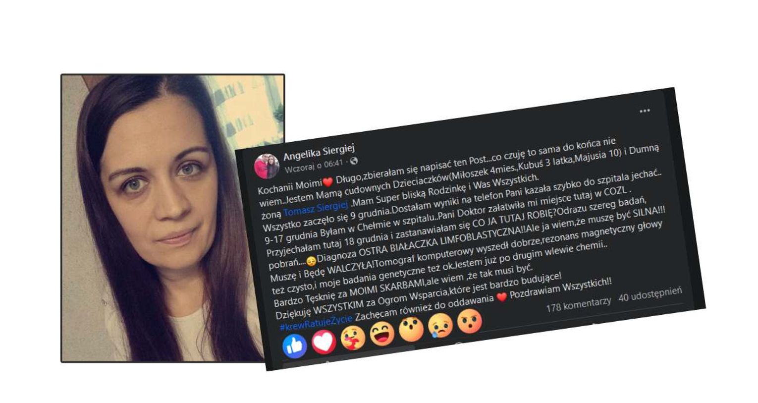 Młoda kobieta w swoim wpisie serdecznie dziękuje za wsparcie i pomoc. Takie sytuacje są bardzo budujące. Pamiętajmy o tym, że dobro wraca. Pani Angelika zachęca do oddawania krwi potrzebującym. Teraz już każdy z nas nie ma wątpliwości, że warto!