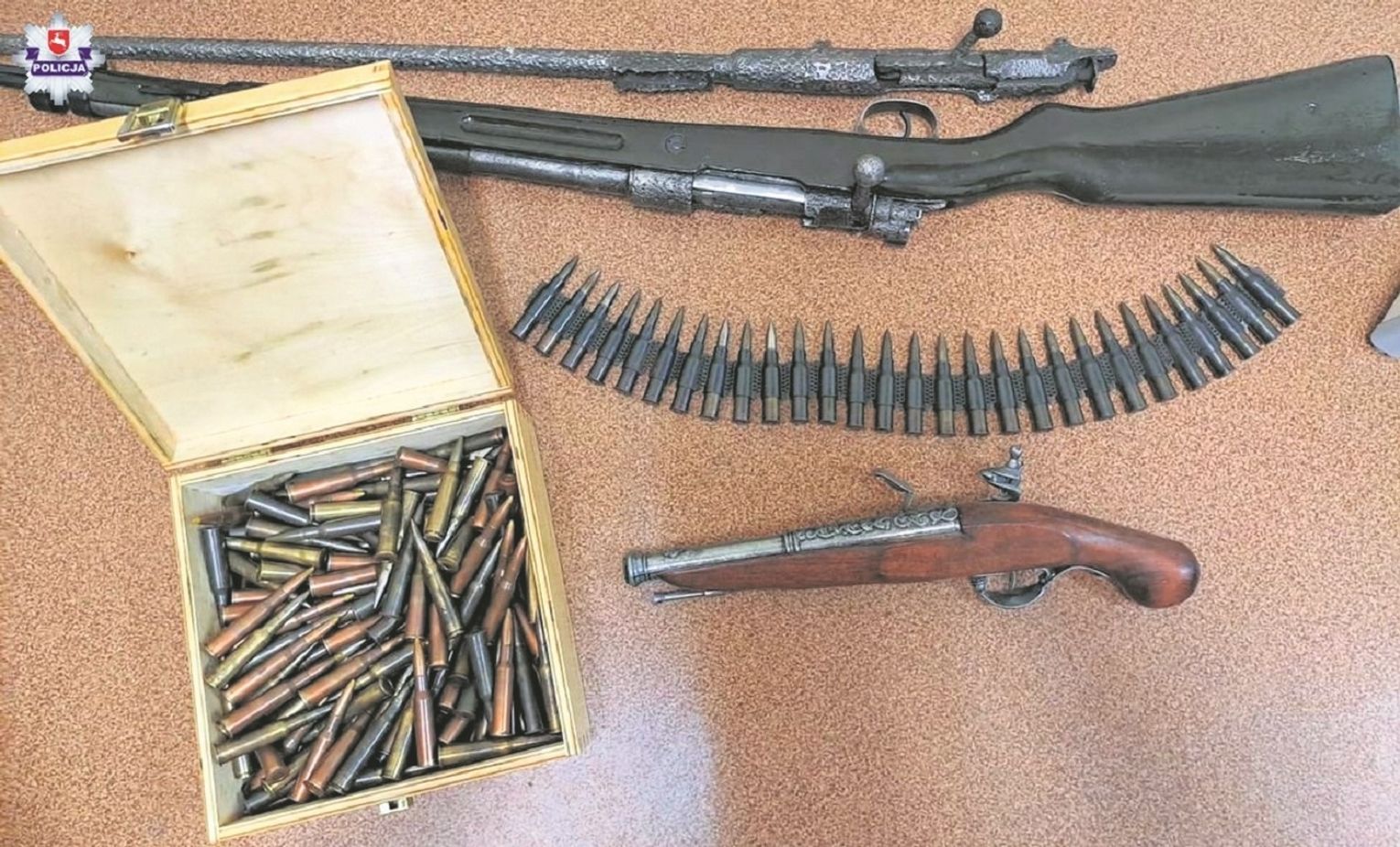Podczas przeszukania jego mieszkania i budynków gospodarczych natrafiono na prawdziwy arsenał broni, w tym broń palną (karabin), substancje wybuchowe (trotyl, proch bezdymny do amunicji strzeleckiej i amunicji artyleryjskiej), przyrządy wybuchowe (pocisk moździerzowy, pociski i zapalniki artyleryjskie, granaty ręczne), amunicję (naboje karabinowe, sportowe, pistoletowe, rewolwerowe i myśliwskie). 52-latek nie miał na to wszystko wymaganego zezwolenia.