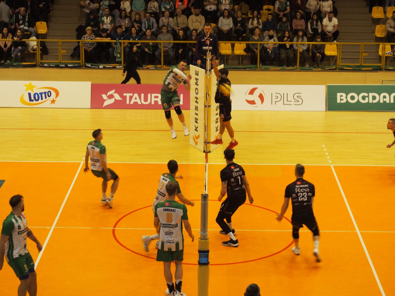 Z kolei w sobotę (13 stycznia) biało-zieloni, w ramach 17. kolejki Tauron I ligi, podejmowali we własnej hali zespół BAS Białystok. Pierwszy set poszedł gospodarzom dosyć gładko i wygrali go pewnie 25:15. Bardzo dużo dramaturgii dla wszystkich obecnych w hali MOSiR przyniosła natomiast druga część spotkania. Goście wyszli pod siatkę bardziej skoncentrowani i zaciekle bronili oraz atakowali, a to przekładało się na remisy i zmienną minimalną przewagę. Jednym z punktów zwrotnych, który dodał sił drużynie Arki, były trzy asy serwisowe z rzędu w wykonaniu Mariusza Magnuszewskiego, dzięki którym goście stracili prowadzenie i doszło do stanu 19:18. Żadna ze stron nie chciała odpuścić, oba zespoły miały piłki setowe i dopiero na 31:29 pełen emocji set zakończył atak Patryka Szwaradzkiego. W trzecim secie gospodarze ewidentnie chcieli zaznaczyć, kto jest górą w tym meczu i w pewnym momencie prowadzili aż 20:12. Rywale z Białegostoku robili co mogli i udało im się odrobić nieco punktów, jednak o wyniku meczu przesądził Łukasz Łapszyński, który wrzutką zakończył spotkanie wynikiem 25:19. MVP meczu został wybrany libero Bogdanki Arki Chełm Maciej Sas.