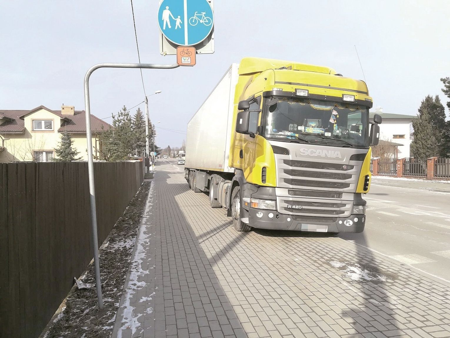 Czytelnik przysłał nam również zdjęcie tira, którego kierowca zaparkował przy sklepie Gama przy ul. Szpitalnej. Widać wyraźnie, że pojazd zajmuje praktycznie całą szerokość ścieżki rowerowej.