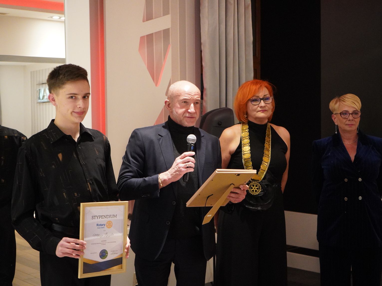 Każdego roku Rotary Club Chełm wspiera finansowo utalentowaną młodzież uczęszczającą do Państwowej Szkoły Muzycznej I i II st. w Chełmie. Podczas kolacji charytatywnej stypendia, każde o wartości 1500 zł, otrzymali: Iga Babicz, Izabela Lenart i Miłosz Lipczuk. Miłosz Lipczuk uczęszcza do klasy saksofonu. W minionym roku wraz z zespołem Mashup Company, do którego należy, występował w Sindelfingen w Niemczech na Międzynarodowym Festiwalu Ulicznym i w Beit Sahor w Palestynie w tamtejszym konserwatorium oraz podczas festiwalu miejskiego. Odnosi też sukcesy solowe, zdobył m.in. III miejsce na XIII Międzynarodowym Konkursie „Instrumenty dęte” w Jastrzębiu Zdroju, II miejsce w II Ogólnopolskim Konkursie Saksofonowym Uczniów Szkół Muzycznych I i II st. w Łodzi, III miejsce na XXIII Festiwalu Instrumentów Dętych w Białej Podlaskiej i II miejsce w XIII Międzynarodowym Konkursie Instrumentów Dętych Uczniów Szkół Muzycznych I st. w Biłgoraju. Poza szkołą muzyczną należy do zespołu folkowego „Cuda wianki”. Iga Babicz rozwijała swoje umiejętności pod okiem profesorów w kraju i zagranicą. Trzykrotnie brała udział w zagranicznych projektach, m.in. w Giwatajim w Izraelu. Zdobyła mi.n. wyróżnienie w Międzynarodowym Konkursie Muzycznym OPUS 2023 w Łodzi, wyróżnienie w Konkursie Instrumentów Dętych w Lublinie, Grand Prix podczas I Włodawskich Spotkań Fletowych, III miejsce w XXI Festiwalu Instrumentów Dętych w Białej Podlaskiej, II miejsce w XI Makroregionalnym Konkursie Instrumentów Dętych w Biłgoraju. Izabela Lenart zdobyła m.in. wyróżnienie na Lubelskim Konkursie Akordeonowym w 2023 r. Jest członkinią zespołu MASHUPComp., flecistką w Orkiestrze Dętej Cementowni Chełm i zespole folkowym „Cuda wianki”. |