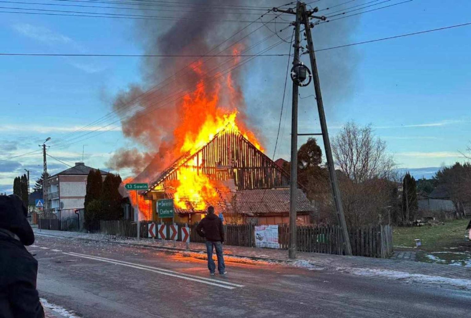 Dostaliśmy sygnał, że jedna osoba - starszy mężczyzna - może być poparzony i pogotowie przewiozło go do szpitala. To u niego w domu wybuchł ogień. Na szczęście mieszkańcy pomogli mu wydostać się z budynku jeszcze przed przyjazdem ratowników. Na miejscu działają strażacy zawodowi - aż 8 zastępów z Chełma i 4 ochotnicze z Rudy, dwa z Żalina i z Leśniczówki.