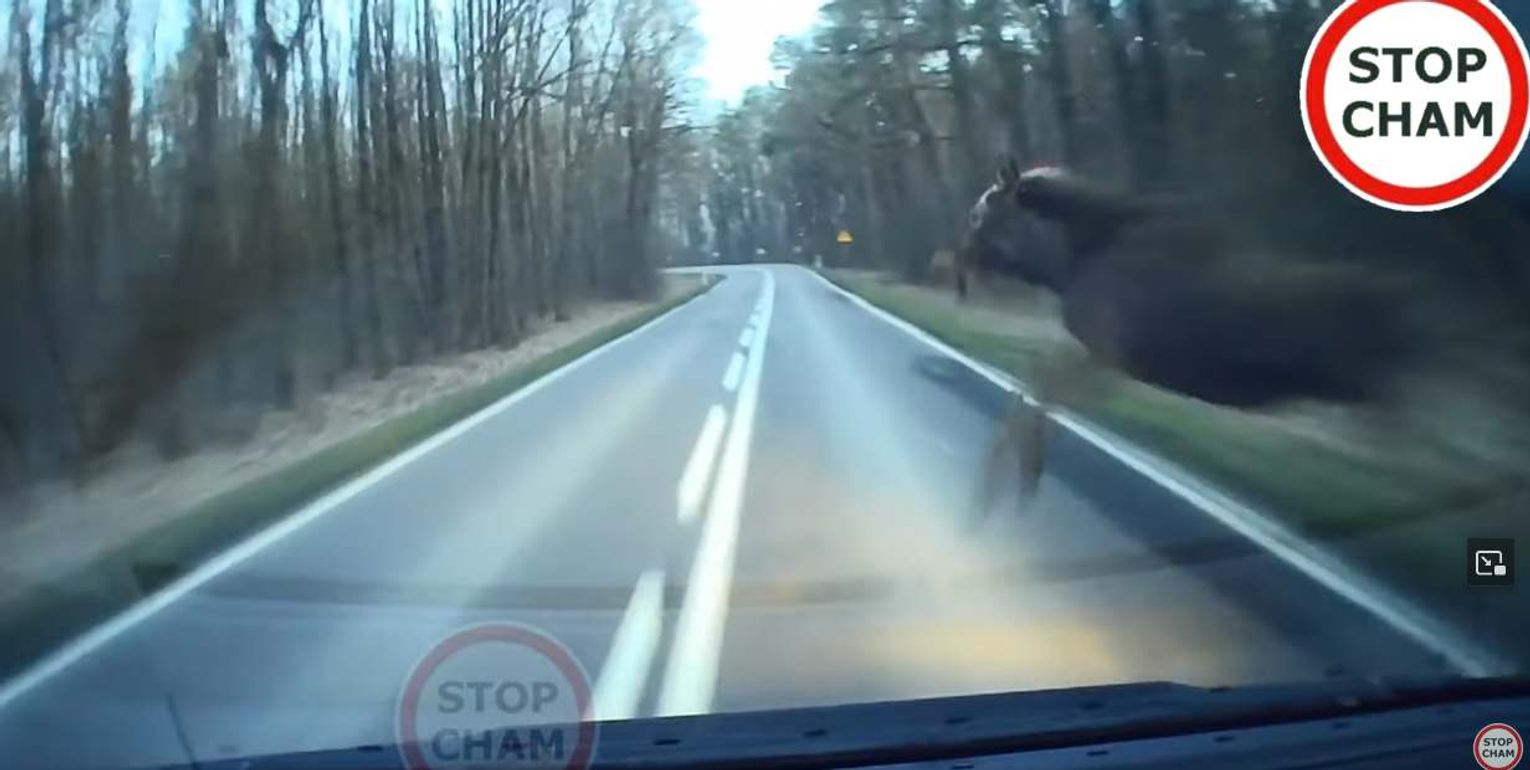 Jak wygląda takie zderzenie z łosiem, nagrał kierowca z Wierzbicy.