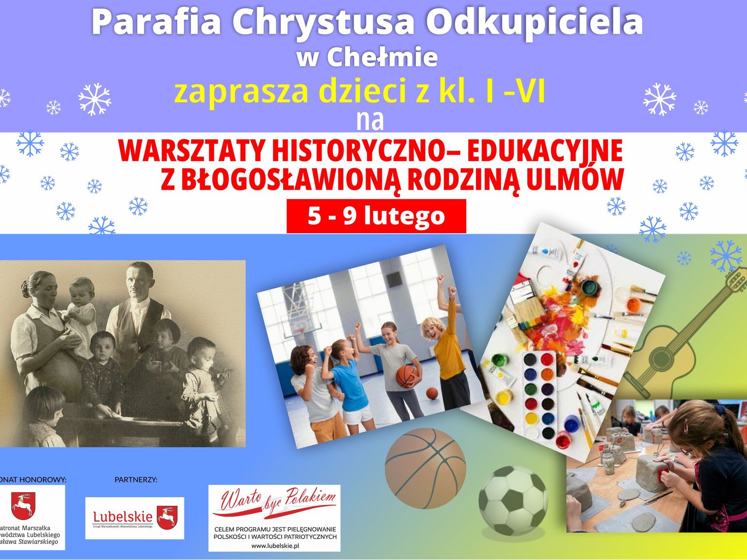 Parafia pw. Chrystusa Odkupiciela w Chełmie zaprasza wszystkie dzieci na warsztaty historyczno- edukacyjne z Błogosławioną Rodziną Ulmów.