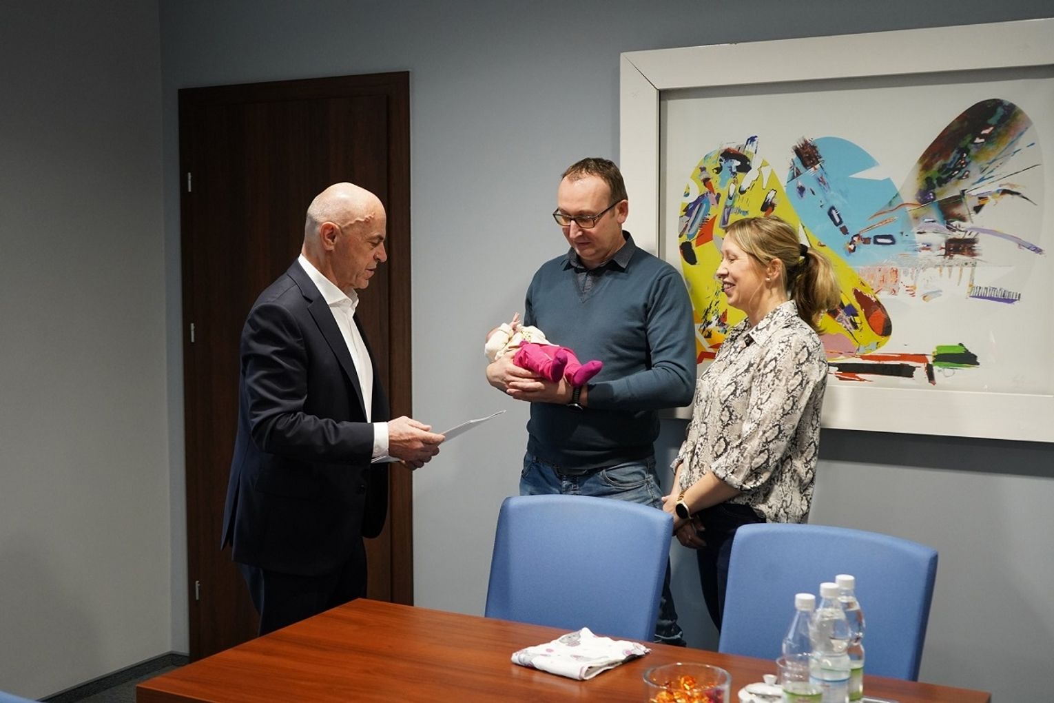 Emilka została przyjęta przez włodarza gminy ciepłymi słowami i słodkimi upominkami.