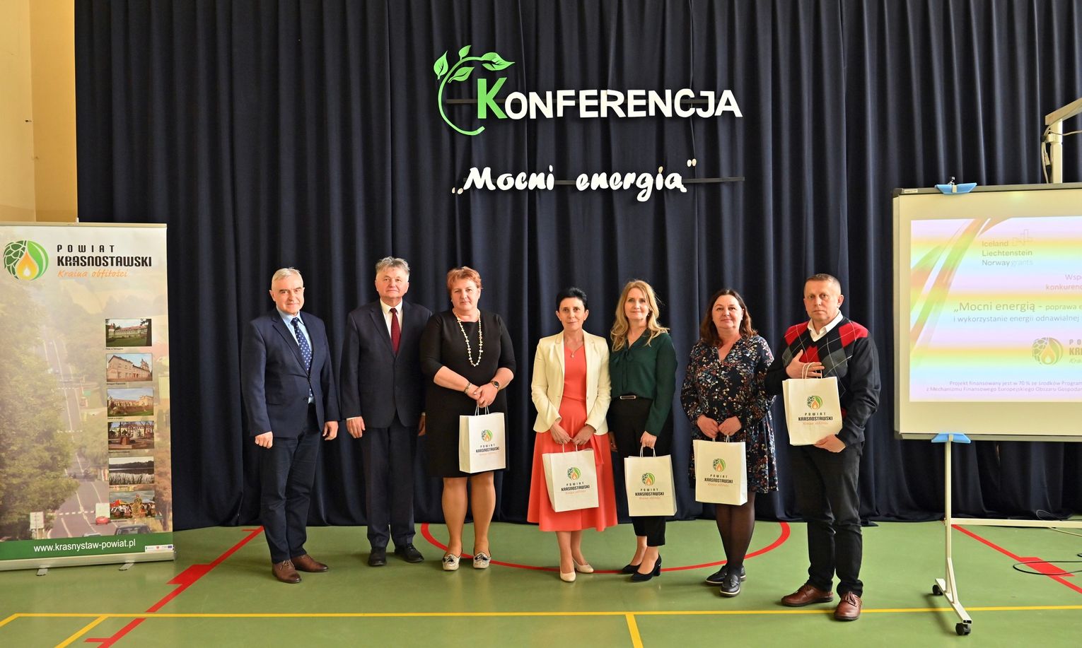 Starosta krasnostawski Andrzej Leńczuk przypomniał uczestnikom od czego, tak naprawdę się zaczęło i jakie warunki były stawiane w kontekście składania wniosku i ubiegania się o pieniądze. Potem głos zabrała Anna Pawelec, naczelnik Wydziału Rozwoju i Polityki Społecznej Starostwa Powiatowego w Krasnymstawie. Przedstawiła przebieg kolejnych etapów projektu „Mocni energią". Było też wystąpienie dra hab. Wojciecha Janickiego, prof. UMCS, który mówił o „Priorytetach homo sapiens, czyli ile jest warte mokradło”. Anna Patejuk, dyrektor I Liceum Ogólnokształcącego im. Wł. Jagiełły w Krasnymstawie odniosła się natomiast do korzyści wynikających z termomodernizacji budynku szkoły. Zwróciła również uwagę na aspekt edukacyjny związany z realizacji projektu.