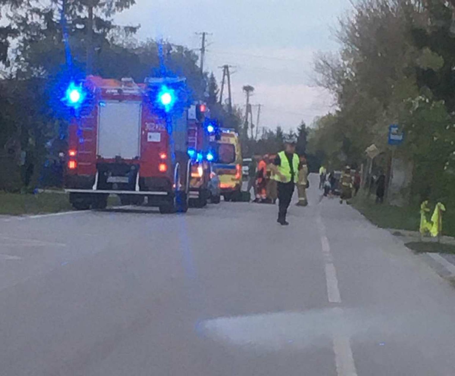 Na miejscu pracują służby. Droga jest nieprzejezdna, policjanci kierują na objazdy.