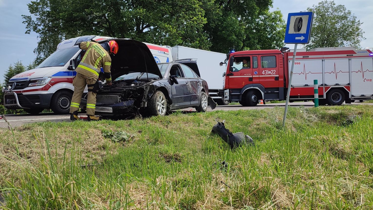 Jak wynika z ustaleń policjantów pracujących na miejscu, kierujący Audi 26-latek poruszający się w stronę Krasnegostawu wracał z pracy i zasnął za kierownicą, w wyniku czego zjechał do przydrożnego rowu, uderzył w przepust a następnie dachował. Mężczyzna był trzeźwy, jechał sam i na szczęście nie doznał żadnych obrażeń.
