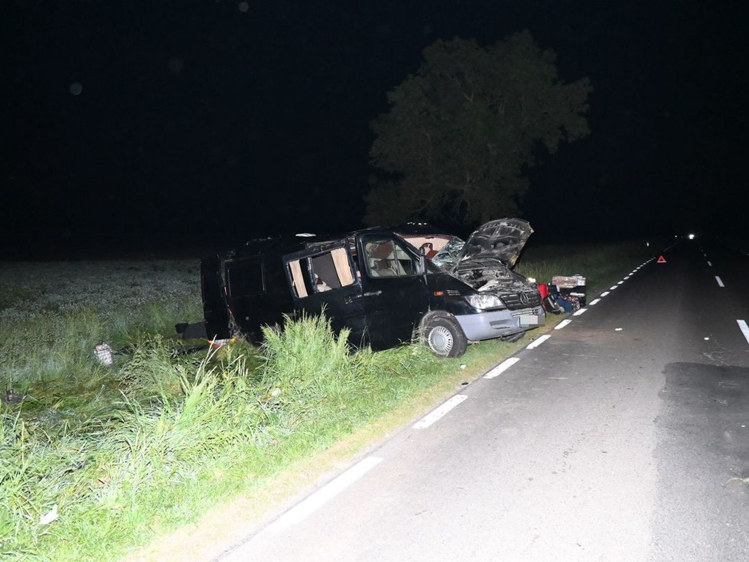 Zdarzenie miało miejsce we wtorek (21 maja), w godzinach wieczornych na trasie Chełm-Hrubieszów. Kierujący mercedesem 58-letni obywatel Ukrainy prawdopodobnie zasnął za kierownicą w wyniku czego na prostym odcinku drogi zjechał do przydrożnego rowu, a następnie zatrzymał się na skarpie.