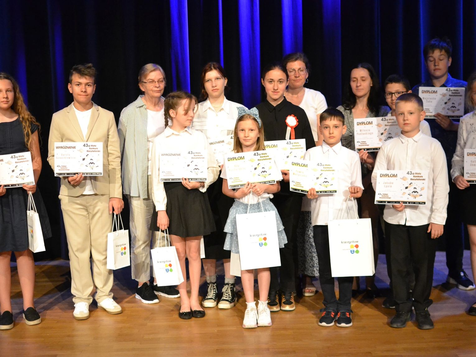 Dodatkowo wyróżniono: Marię Wójtowicz - Młodzieżowy Dom Kultury im. Marii Konopnickiej w Krasnymstawie (kat. uczniowie klas 3-4), Karola Banaszkiewicza - Publiczna Szkoła Podstawowa nr 1 im. Adama Mickiewicza w Krasnymstawie (kat. uczniowie klas 5-6), Alicję Dominę - Publiczna Szkoła Podstawowa nr 1 im. Adama Mickiewicza w Krasnymstawie (kat. uczniowie klas 5-6), Maję Kucharską - Młodzieżowy Dom Kultury im. Marii Konopnickiej w Krasnymstawie (kat. uczniowie klas 7-8).