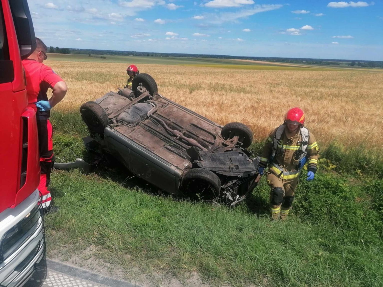 Jak udało nam się ustalić, kierująca autem kobieta z nieznanych przyczyn nagle „złapała” pobocze, zjechała do przydrożnego rowu i dachowała. Karetka pogotowia zabrała ją na obserwację do szpitala. Wszystko jednak wskazuje na to, że nic poważnego się jej nie stało, a zdarzenie zostanie zakwalifikowane jako kolizja.