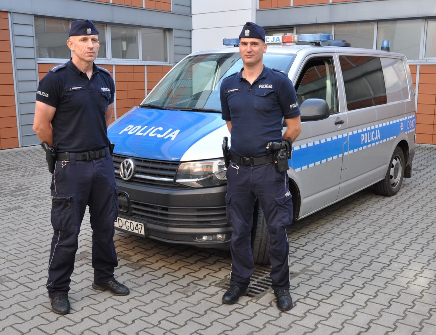Mł. asp. Cezary Borkowski i sierż. szt. Damian Męczyński natychmiast wynieśli poszkodowanego na zewnątrz, udzielając mu pomocy przed przyjazdem Zespołu Ratownictwa Medycznego.