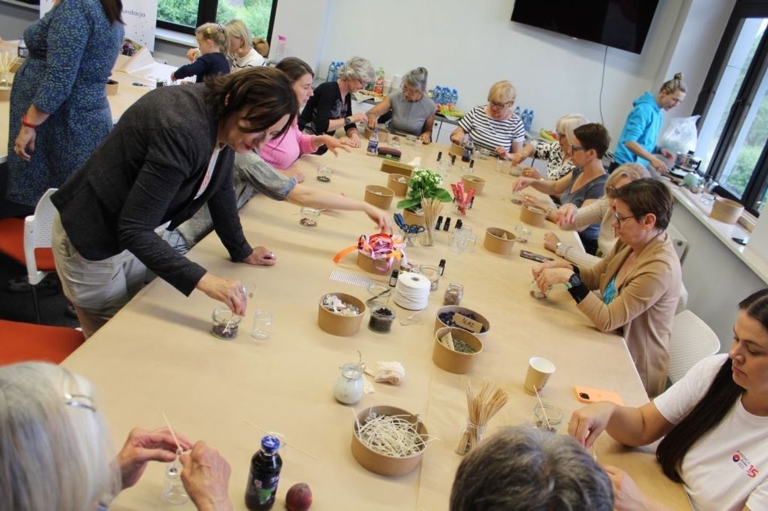 W ramach Zielonych Warsztatów, przygotowanych z myślą o osobach dorosłych, uczestnicy dowiedzieli się, jak nadać drugie życie zbędnym przedmiotom. Tym razem z niepotrzebnych słoików, wykonane zostały nietuzinkowe świece sojowe. Do ich produkcji wykorzystany został w 100% naturalny, nietoksyczny wosk, pozyskiwany z ziaren soi oraz powstały jako produkt uboczny w produkcji miodu - wosk pszczeli, pozyskany od lokalnego pszczelarza. Dodatkami do świec były olejki zapachowe, płatki kwiatów, zioła, ziarna kawy oraz suszone owoce. Warsztaty poprzedzone były krótką rozmową na temat konieczności minimalizacji ilości wytwarzanych odpadów. Zajęcia spotkały się z dużym zainteresowaniem – wzięło w nich udział łącznie 55 osób. Zostały one zorganizowane we współpracy z Biblioteką Pedagogiczną w Chełmie oraz Chełmską Biblioteką Publiczną im. Marii Pauliny Orsetti.