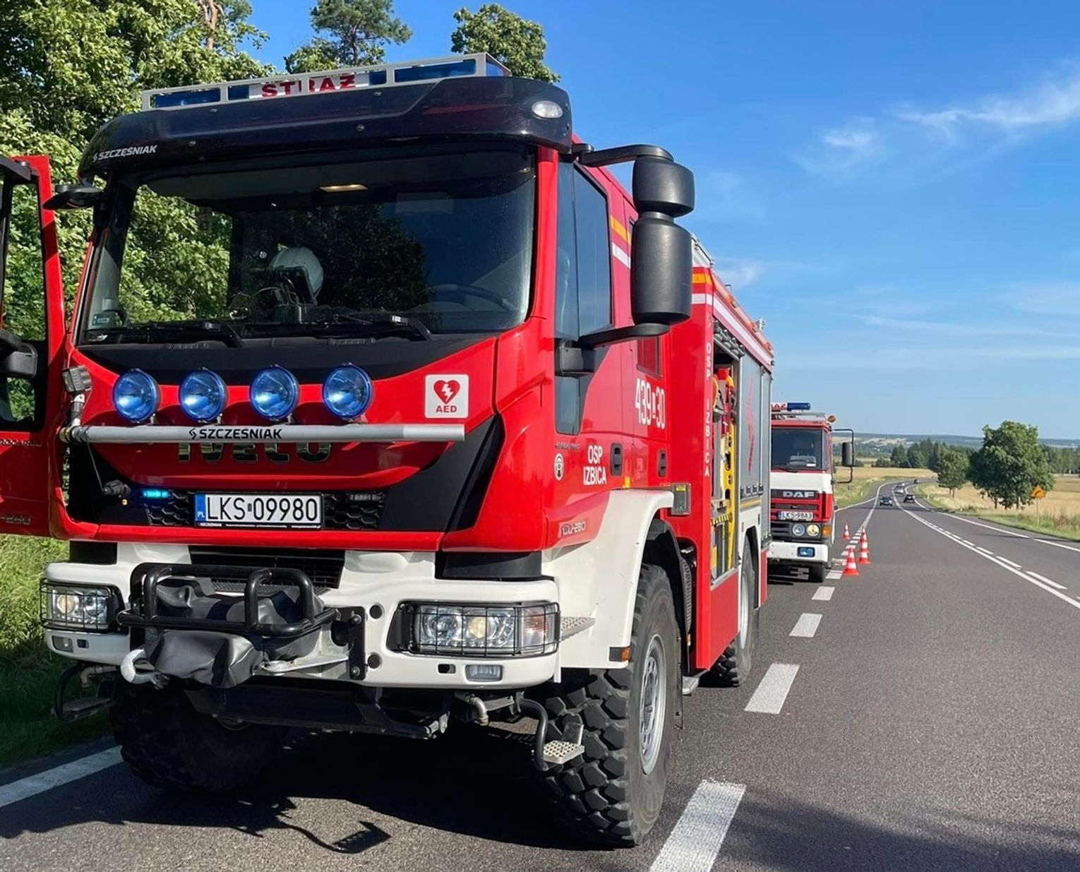 Autokarem podróżowało 70 osób. W pewnym momencie, przejeżdżając przez Tarzymiechy, kierowca zauważył wydobywający się spod maski dym. Wezwano więc natychmiast na pomoc strażaków. Przyjechali zawodowi ratownicy i ochotnicy z Izbicy.