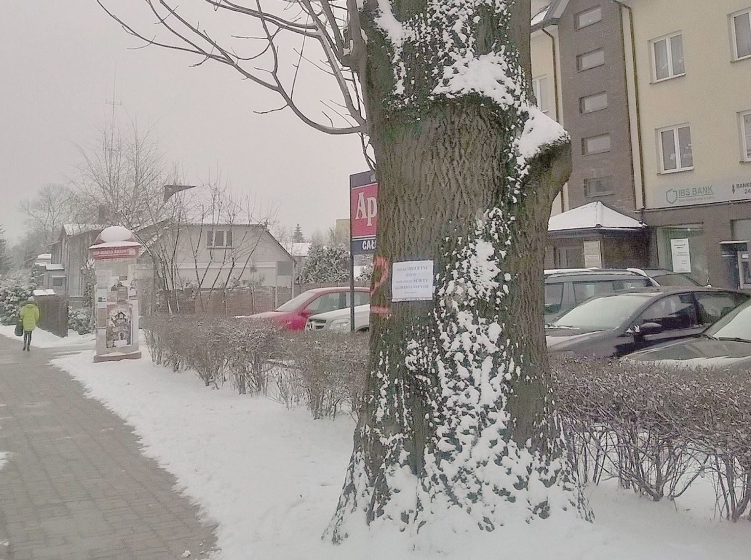Kartki na drzewach w pobliżu Aldika i siedziby Towarzystwa Budownictwa Społecznego pojawiły się na początku lutego br. Zdjęcia z komunikatem, że ponad stuletni jesion może zostać ścięty przez błędną decyzję urzędników opublikował jeden z internautów na portalu "Spotted: Krasnystaw". Sprawa podzieliła internautów. Jedni wskazywali na zbyt daleko idąca przycinkę konarów i gałęzi. Inni skarżyli się na ptasie odchody, które notorycznie zalegały na chodniku.