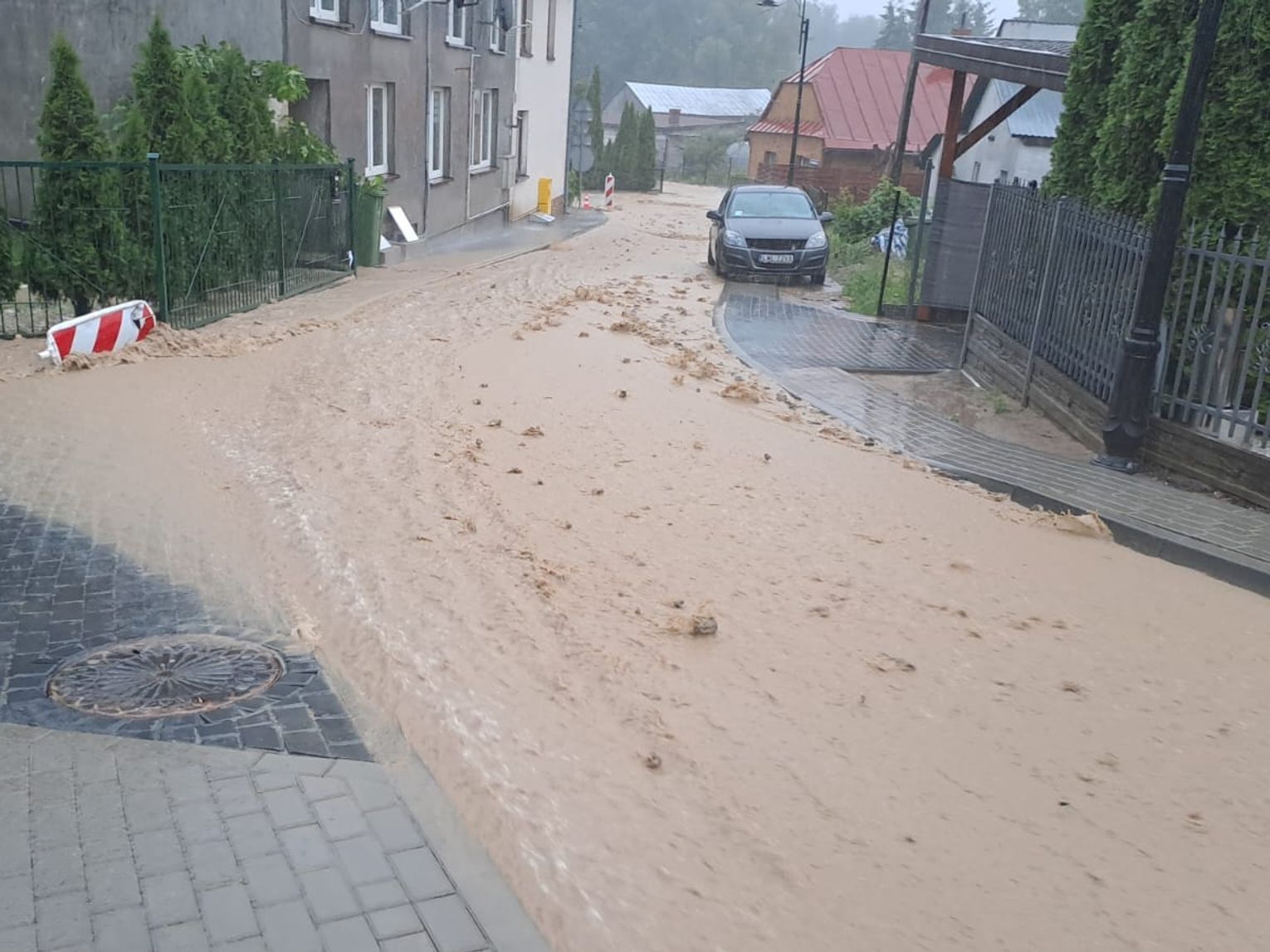 Na szczęście samochody nie zostały w środku zalane, ale stan drogi pokrytej błotem oraz resztkami materiałów remontowych robił przygnębiające wrażenie.