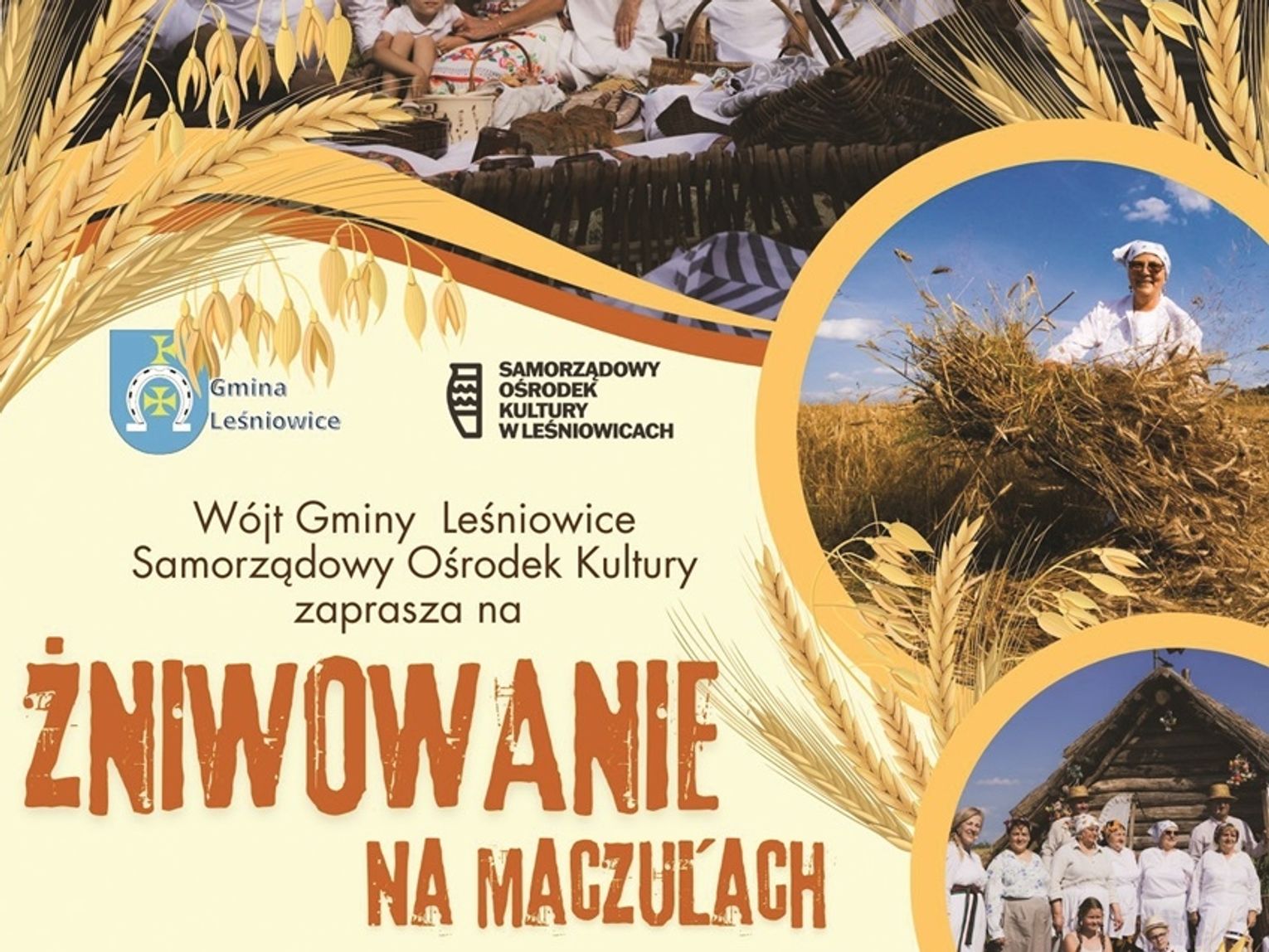 W programie wydarzenia widowisko „Tradycyjne Żniwowanie" w wykonaniu KGW Horodysko i Związku Emerytów, Rencistów i Inwalidów Koło nr 7 w Leśniowicach. Będą też przyśpiewki ludowe, pokazy tradycyjnych metod koszenia, dawnego sprzętu rolniczego oraz obrzędów związanych ze żniwami. Zaplanowano też biesiadę żniwiarzy i gości, występy artystyczne dzieci i młodzieży oraz lokalnych zespołów ludowych i biesiadnych. Zaprezentują się: „Cyja", „Leśniczanki", „Lokalsi" i Zespół ludowy z Darłówka. Włoskie przeboje zaśpiewa Andrea Lattari, a wieczorem organizatorzy zapraszają na dyskotekę pod chmurką z DJ-em Krzysztofem Materą.