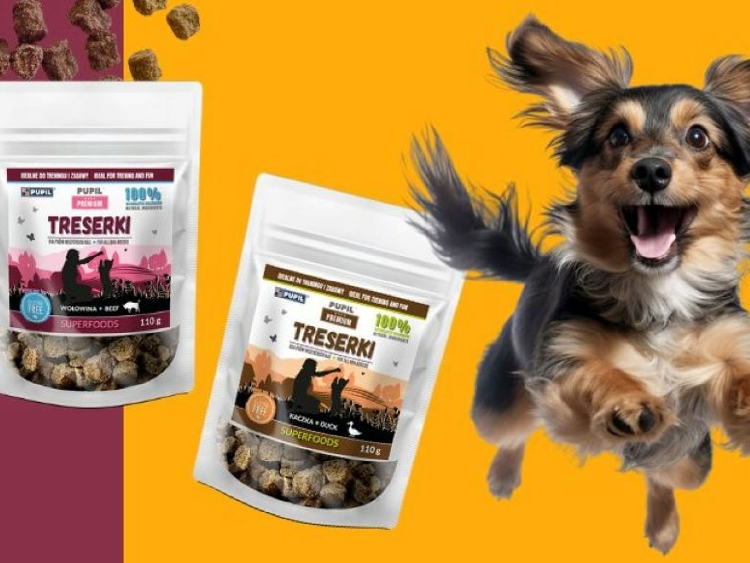 - Skład: Treserki powinny być bogate w białko i zawierać minimalne ilości sztucznych dodatków. Unikaj treserek zawierających konserwanty, barwniki i nadmiar cukru, które mogą być szkodliwe dla zdrowia psa.