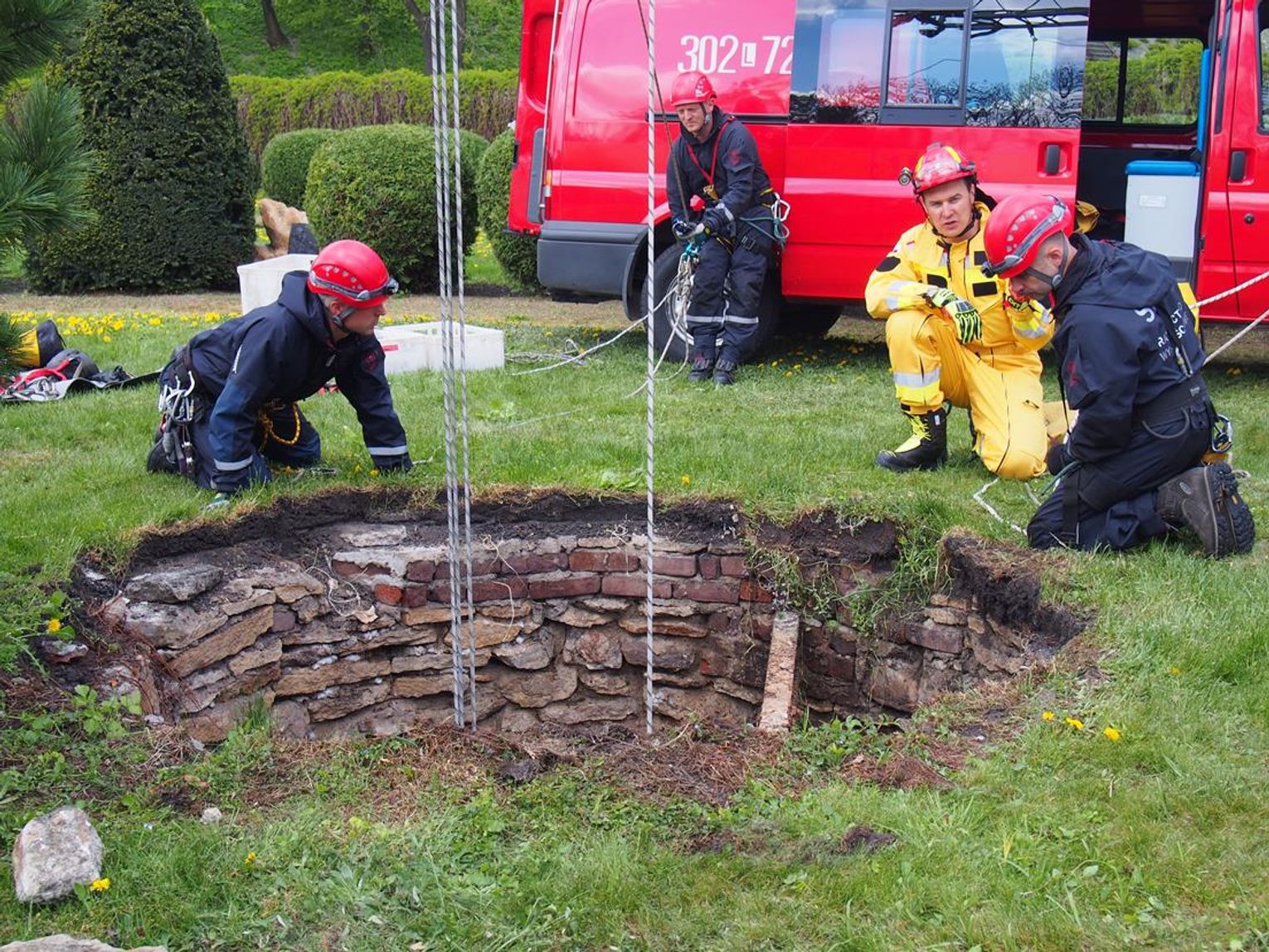 Na terenie parku przy bazylice NNMP w Chełmie trwały specjalistyczne ćwiczenia strażaków, połączone z badaniami naukowymi archeologów. Ekipa mundurowych zeszła do zabytkowej kamiennej studni, aby pobrać próbki pozwalające określić jej wiek.