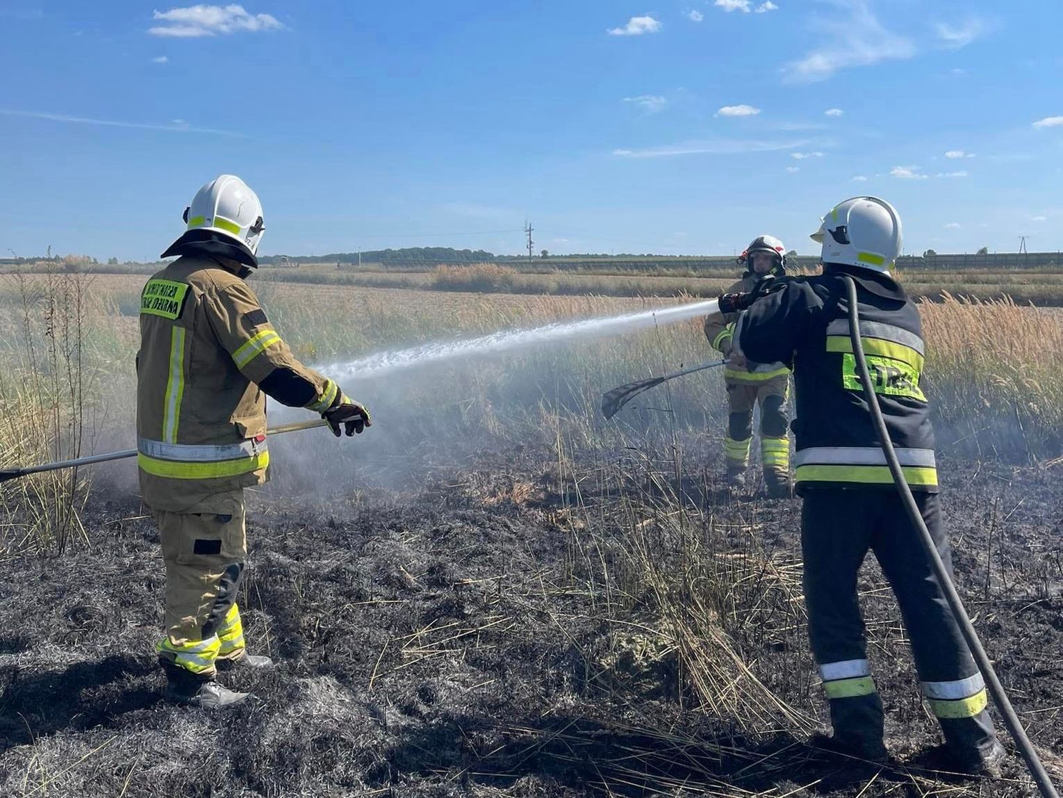 Kilkanaście minut przed godziną 17.00 strażacy znów musieli zmierzyć się z żywiołem, tym razem w Wielkopolu (gm. Gorzków). Tam w ogniu stanął kombajn zbożowy i ściernisko. Na szczęście mężczyzna kierujący kombajnem opuścił go jeszcze przed przyjazdem straży. Sytuacja była bardzo poważna, gdyż 20 metrów dalej znajdowały się zabudowania. Ratownicy z Krasnegostawu i Gorzkowa szybko uporali się z pożarem, jednak straty wyrządzone przez ogień szacuje się na ok 25 tys. złotych.