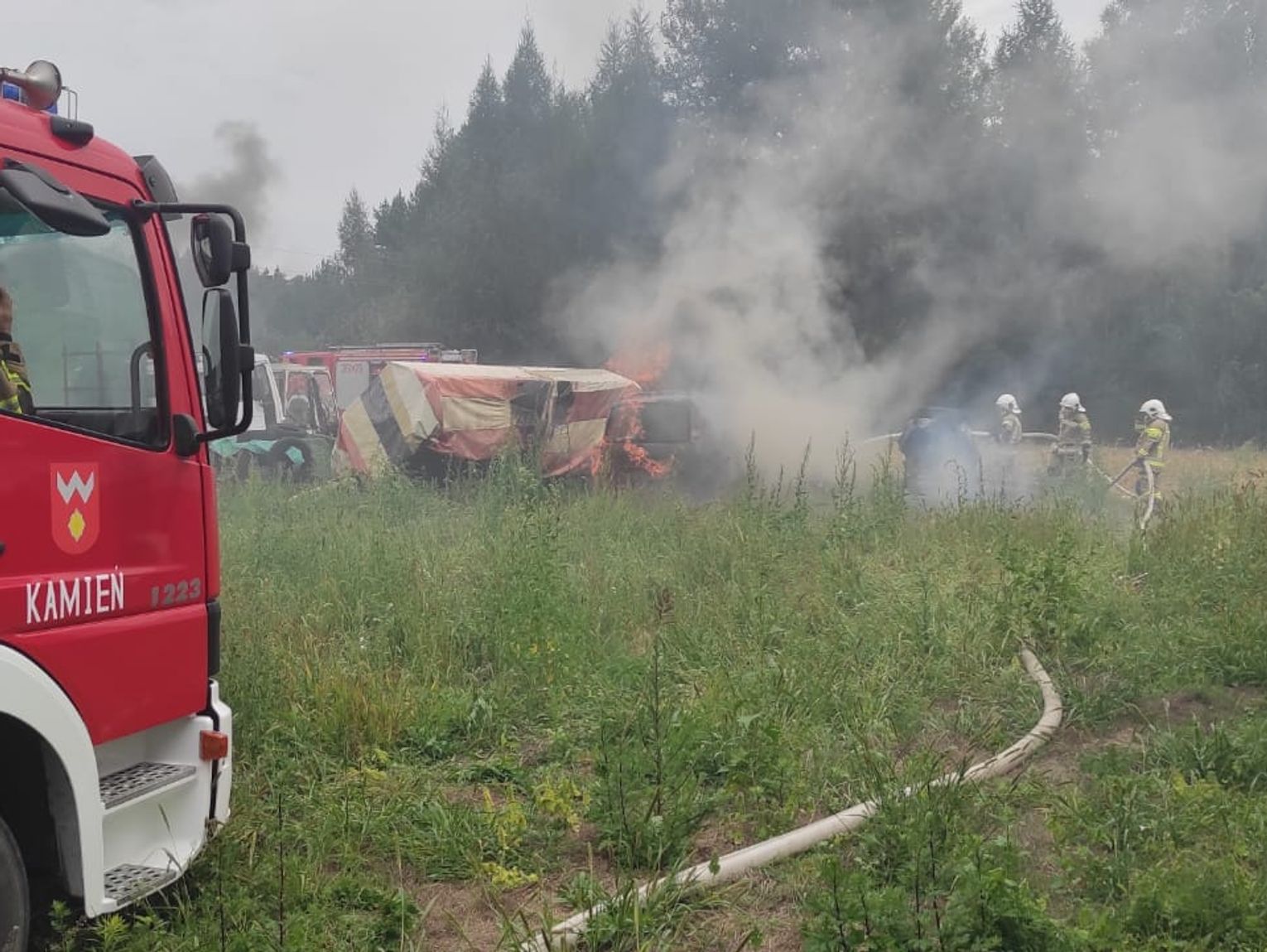 Podczas działań po raz pierwszy od ukończenia remontu, OSP Kamień wykorzystała ciężki samochód gaśniczy Jelcz, który doskonale sprawdził się w akcji, ze względu na dużą ilość przewożonego środka gaśniczego i wydajność autopompy.