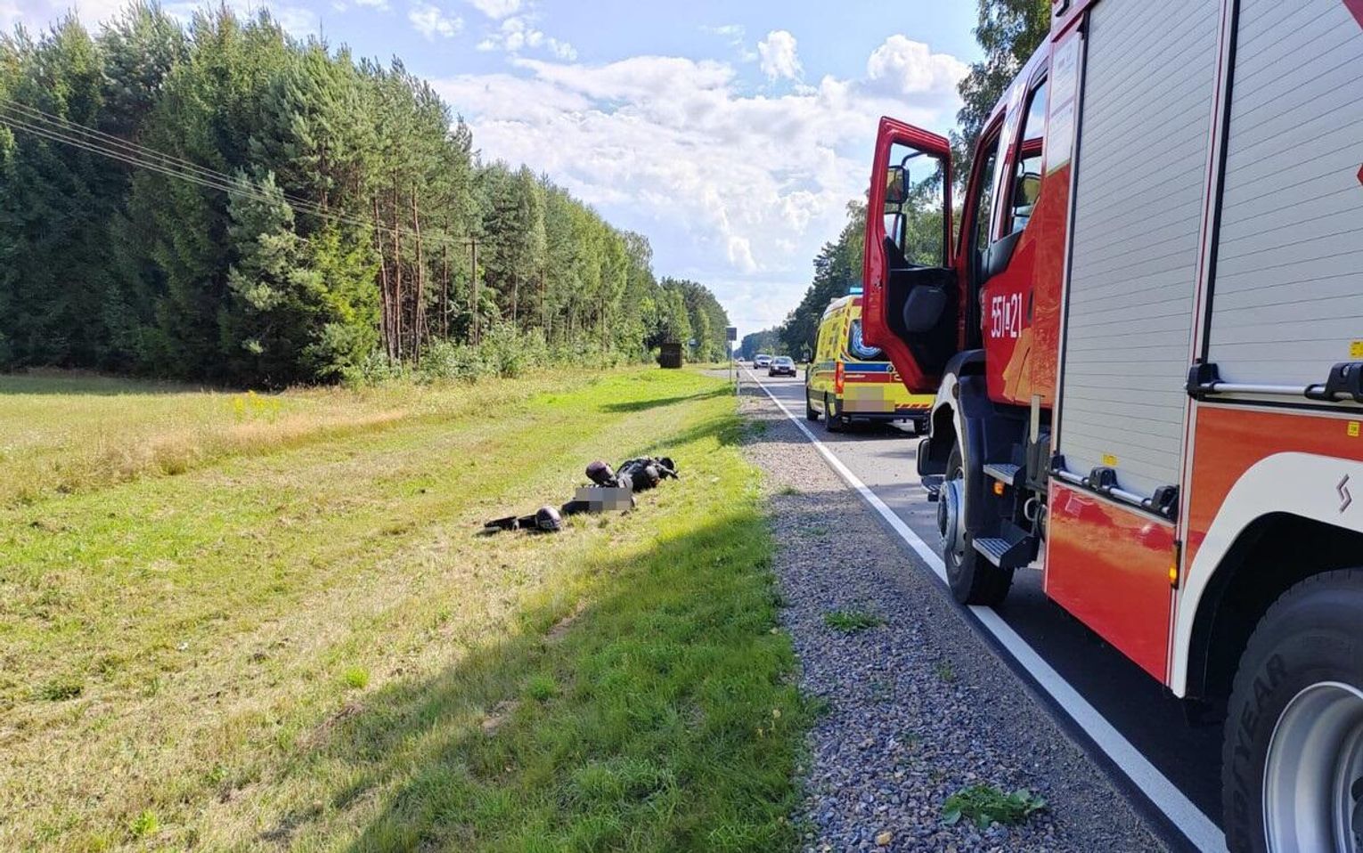 - Na miejscu policjanci ustalili, że kierujący motocyklem 50-latek z gminy Wola Uhruska na prostym odcinku drogi stracił panowanie nad pojazdem, a następnie zjechał na pobocze, gdzie motocykl przewrócił się i "koziołkował". Mężczyzna trafił do szpitala – informuje aspirant Elwira Tadyniewicz, rzeczniczka prasowa Komendy Powiatowej Policji we Włodawie.
