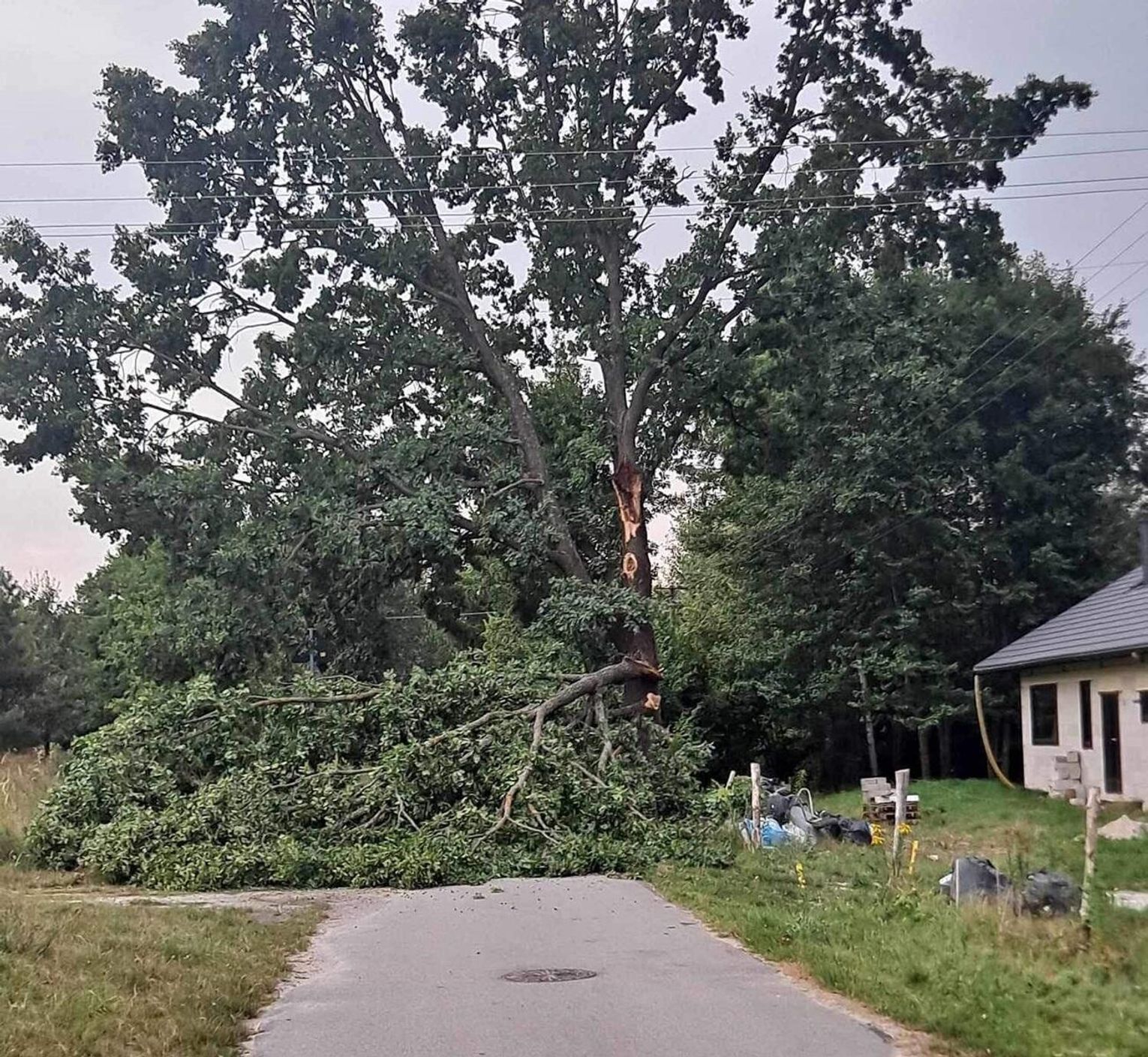 Włodawscy strażacy też jeździli do kilku interwencji. Głównie usuwali powalone drzewa. Jedno spadło na dach budynku we wsi Wyryki-Adampol w gminie Wyryki.