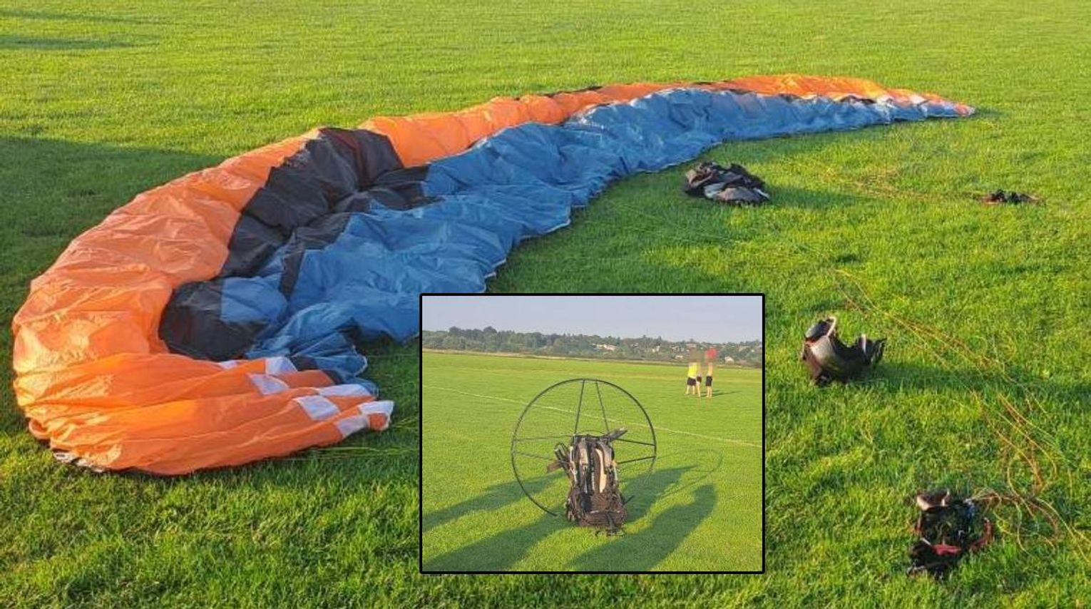 Pilot paralotni, 49-letni mieszkaniec powiatu legionowskiego, na wysokości około 10 metrów stracił panowanie nad nią. W efekcie paralotnia spadła na ziemię na łące przy ul. Sikorskiego.