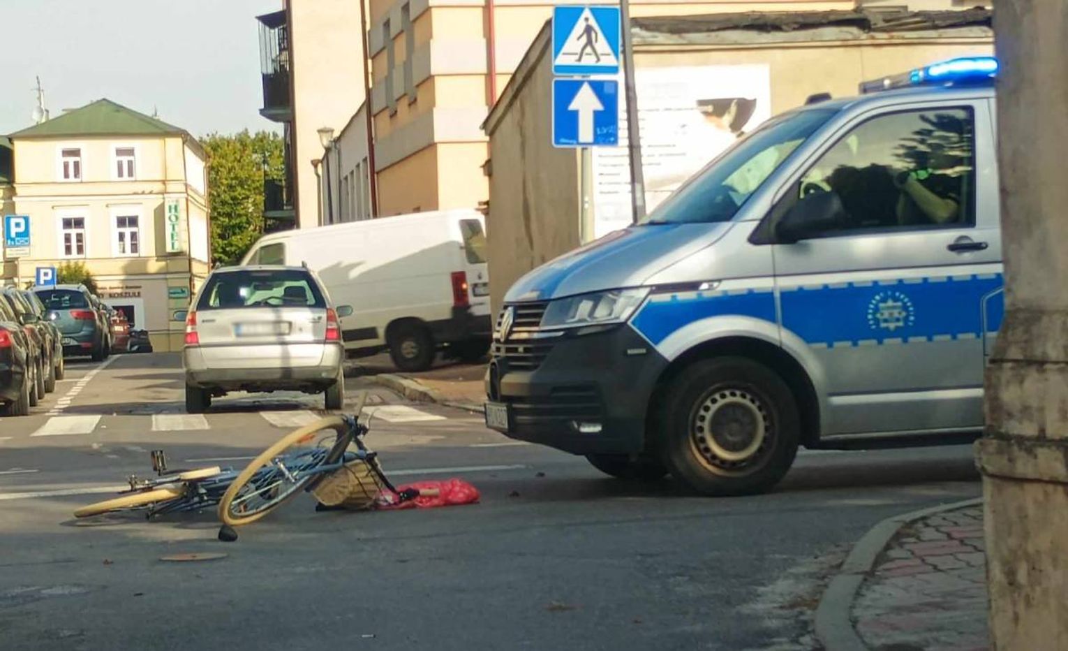 Ze wstępnych ustaleń policjantów wynika, że 27-letnia kobieta jechała na rowerze ul. Piłsudskiego w stronę Pl. 3 Maja. W pewnym momencie zaczęła ją wyprzedzać kierującą skodą 51-latka. W trakcie tego manewru rowerzystka zasygnalizowała zamiar skrętu w lewo w ulicę Kościelną, po czym rozpoczęła ten manewr, nie upewniając się, że może go bezpiecznie wykonać.
