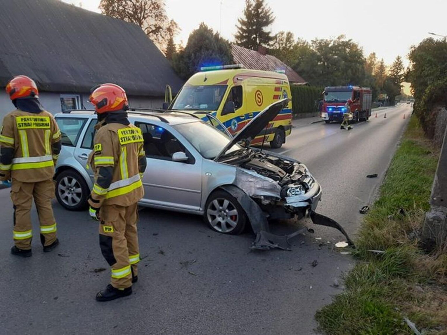 Na miejsce skierowano 2 zastępy zawodowych strażaków z Krasnegostawu. Udzielili pomocy poszkodowanej, która następnie została przewieziona karetką pogotowia do szpitala. Ratownicy dla bezpieczeństwa odcięli źródło zasilania auta, a także zabezpieczyli miejsca zdarzenia do czasu przybycia pracowników pogotowia energetycznego.