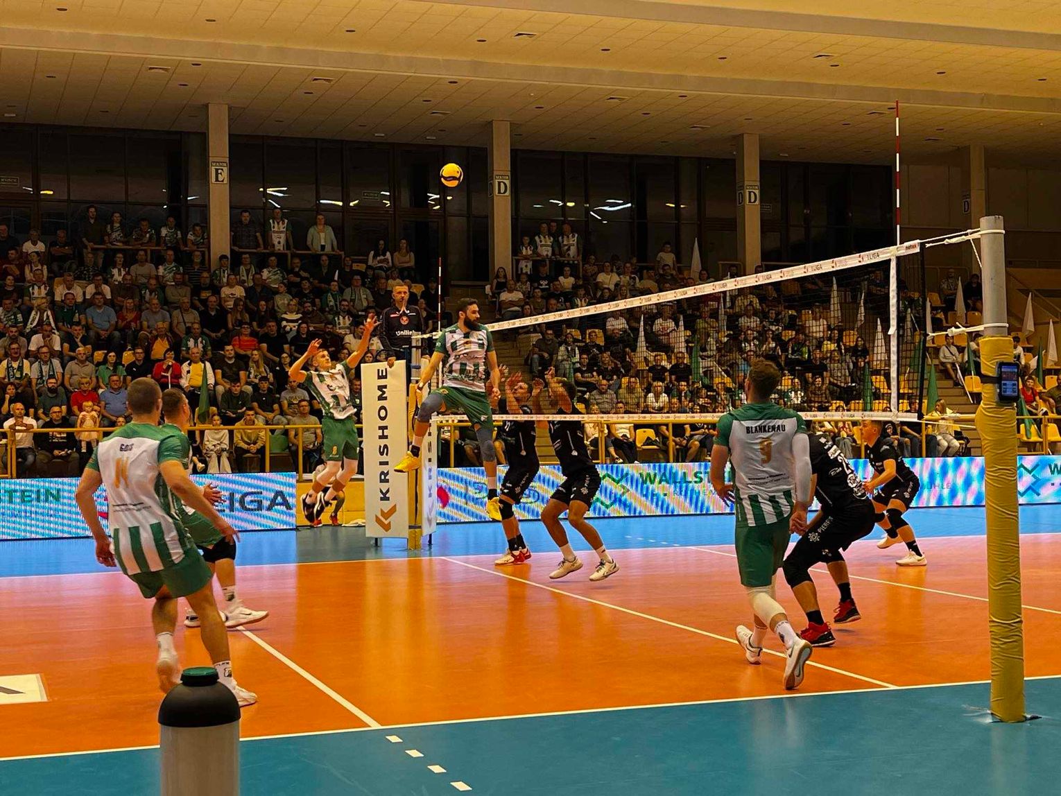 Na drugą goście wyszli w podstawowym składzie i ten manewr trenera Krzysztofa Michalskiego szybko przyniósł dla nich wymierne skutki. Od samego początku budowali przewagę, grając zupełnie pewniej i skuteczniej niż przed zmianą stron, popełniali również mniej błędów i zmuszając do nich siatkarzy ChKSu. Punkty dla WKSu zgarniał przede wszystkim Jan Siemiątkowski, ale w ślad za nim podążali Jakub Rohnka, Kristaps Smits i Mariusz Schamlewski, a pod koniec seta zabłysnął jeszcze Kajetan Tokajuk. W grze biało-zielonych widać było więcej nerwów, zaś skupienia nie ułatwiała presja, chociaż w połowie partii udało im się nieco odrobić straty, asa dołożył ponadto Jędrzej Goss. Przy stanie 21:24 dla gospodarzy, piłkę w siatkę zaserwował Paweł Rusin, co przyniosło remis partii na tablicy wyników.