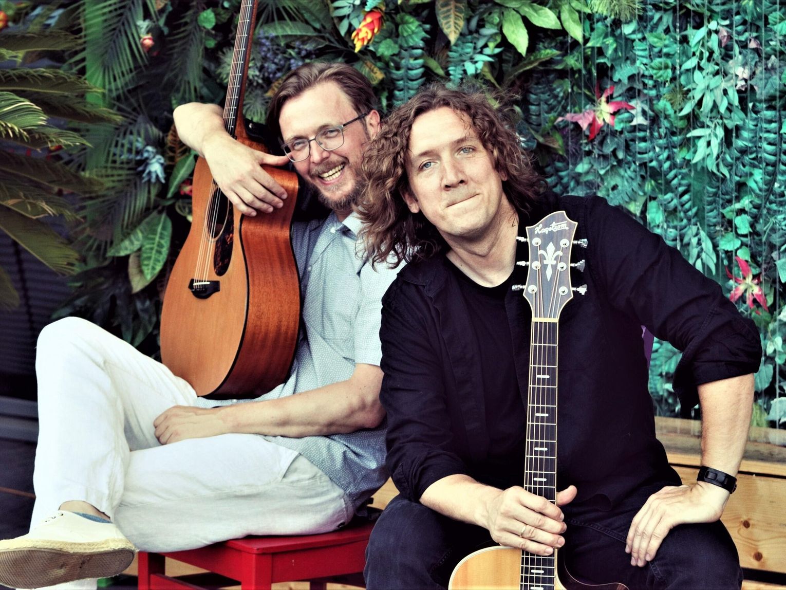Łukasz "Wiśnia" Wiśniewski i Jarek Jurkiewicz to duet niecodzienny, stworzony przez muzyków z pozornie dwóch muzycznych światów. "Wiśnia", na co dzień lider Kraków Street Band, zazwyczaj kojarzony jest z bluesem, choć w rzeczywistości to twórca miejskich ballad, gdzie surowy blues przeplata się z delikatnymi, folkowymi melodiami. Jarek Jurkiewicz natomiast, choć mocno wpisany w scenę piosenki autorskiej, jest gitarzystą niezwykle wszechstronnym i wielobarwnym, który z równą łatwością porusza się po jazzowych improwizacjach i country'owych riffach. To właśnie to muzyczne przeciwieństwo sprawia, że ich wspólne występy są tak wyjątkowe. Na koncercie zatem można spodziewać się nieoczekiwanych połączeń, gdzie surowość spotyka się z delikatnością, a blues z jazzem.