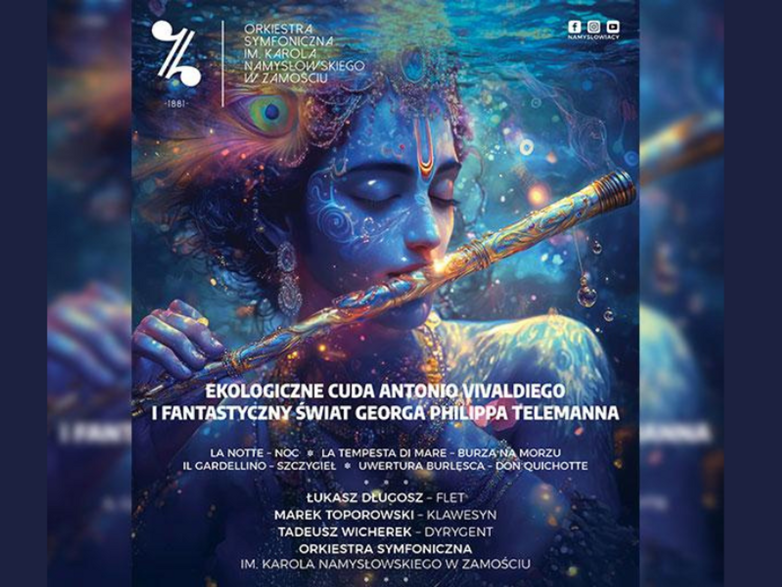 W programie koncertu znajdą się trzy koncerty fletowe Antonio Vivaldiego, inspirowane pięknem przyrody: "La Notte" (Noc), "La Tempesta di Mare" (Burza na morzu) oraz "Il Gardellino" (Szczygieł). Dowiemy się, jak kompozytor w swojej muzyce oddawał piękno nocnej ciszy, burzliwych mórz i delikatnego śpiewu ptaków. Koncert uzupełni uwertura "Don Kichot" Georga Philippa Telemanna, która w połączeniu z obrazami AI ożywi przygody słynnego hiszpańskiego rycerza.