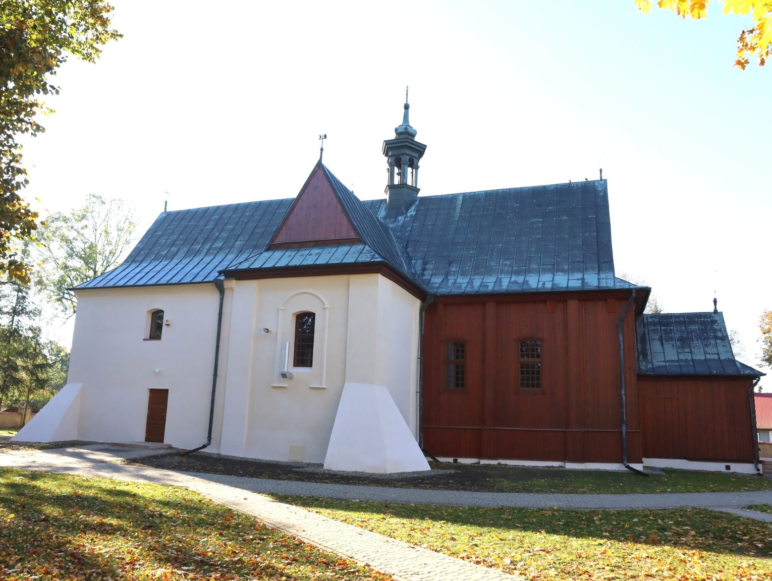 - „W ramach prac wykonano izolację pionową ścian fundamentowych - przy użyciu szlamu, usunięto wtórną okładzinę cokołu z płytek cementowych, zastępując ją tynkami wapiennymi, wymieniono opaskę wokół kościoła z kostki brukowej na żwirową, rozebrano nieużytkowane boczne schody oraz wykonano nowe schody przy głównym wejściu” - czytamy na profilu Lubelskiego Wojewódzkiego Konserwatora Zabytków.