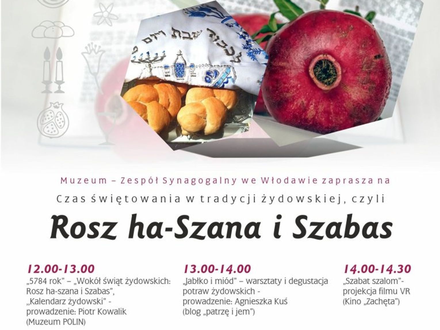 Czas świętowanie rozpocznie się o godzinie 12:00 zajęciami "5784 rok" – "Wokół świąt żydowskich: Rosz ha-szana i Szabas". Podczas tych warsztatów, prowadzonych przez Piotra Kowalika z Muzeum POLIN w Warszawie, uczestnicy dowiedzą się więcej o symbolice i obrzędach związanych ze świętami, a także zabierze uczestników w fascynującą podróż po świecie żydowskiego kalendarza.