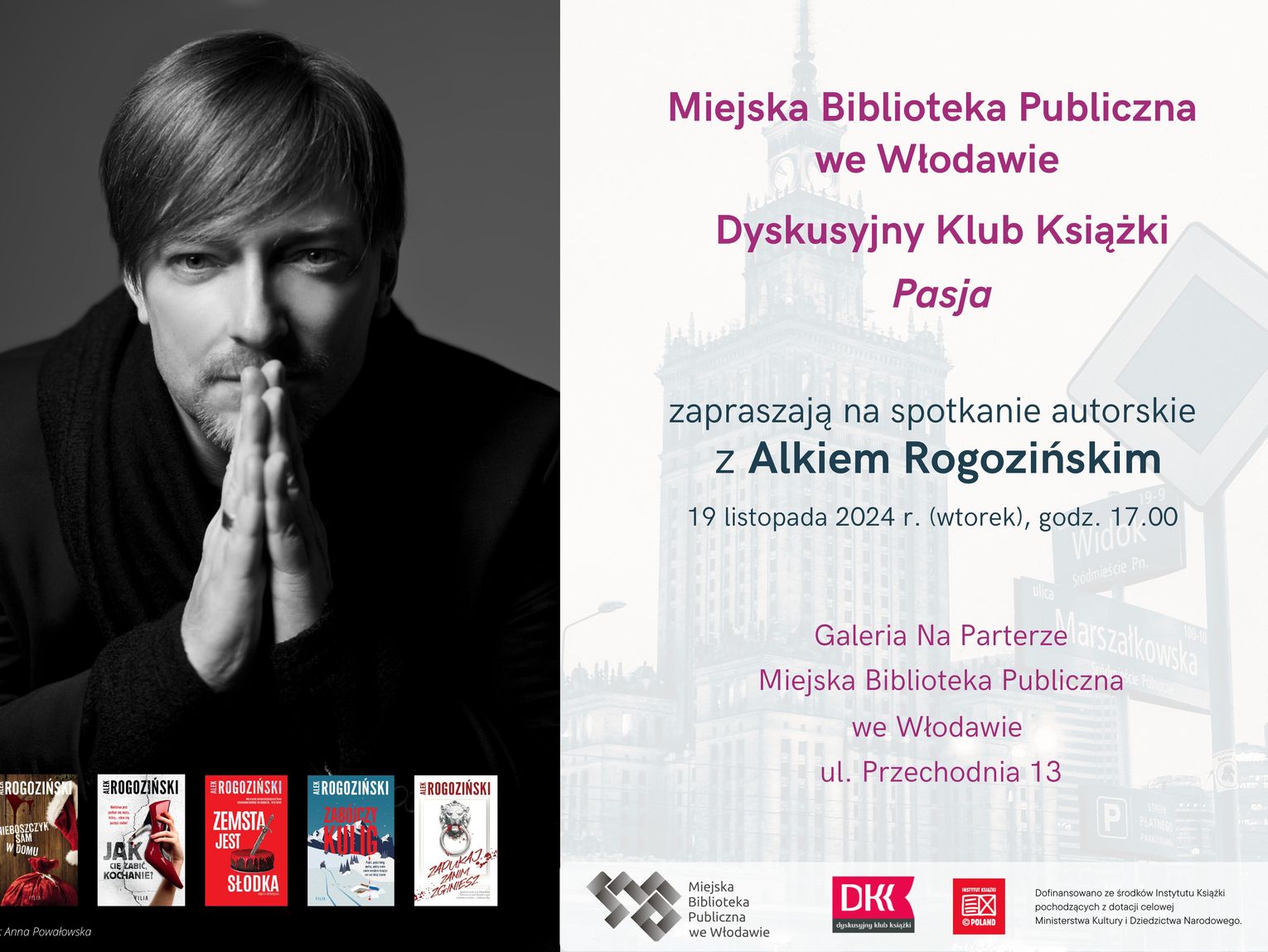 Alek Rogoziński, znany z umiejętności łączenia w swoich powieściach elementów dramatu, kryminału i komedii, zaprosi uczestników w podróż po świecie swoich literackich kreacji.
