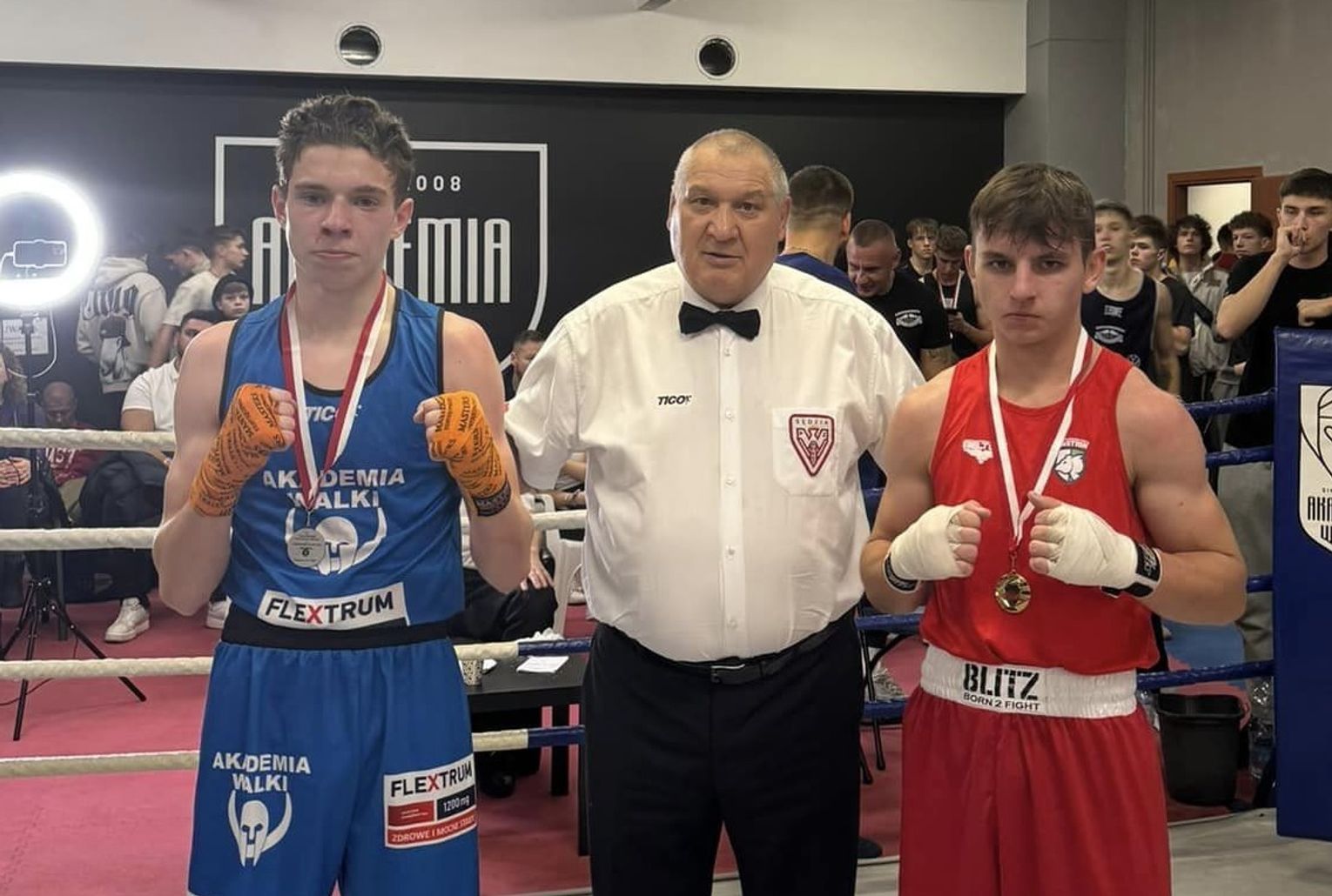 Z kolei grupa reprezentantów chełmskiego klubu przekuła umiejętności na medale podczas Turnieju Niepodległościowego, którego gospodarzem była Akademia Walki Warszawa. Po złoto sięgnął Kornel Czajkowski, który na co dzień trenuje pod okiem Michała Soczyńskiego, który wygrał starciu już w drugiej rundzie. Drugi medal w takim samym kolorze to zasługa Huberta Bachowskiego, który 3:0 pokonała jednego z reprezentantów gospodarzy. Sukces dopisała do konta debiutująca w oficjalnych zawodach Julia Bielecka, która w pojedynku sparingowym postawiła wymagające warunku bardziej doświadczonej rywalce. Po stołecznym turnieju dorobek Centrum Sportów Walki Bastion zasiliły również trzy srebrne krążki. Blisko zwycięstwa był Alan Romanów, który po wyrównanym starciu musiał uznać wyższość zawodnika gospodarzy. Na punkty walkę przegrał Alan Kubajka, który miał jednak niełatwe zadanie, ponieważ stawiał mocny opór wicemistrzowi Polski młodzików. Po jeszcze jedno srebro sięgnął Wiktor Naklicki, który z powodu braku rywala musiał krzyżować rękawice w cięższej kategorii i uznać wyższość przeciwnika.