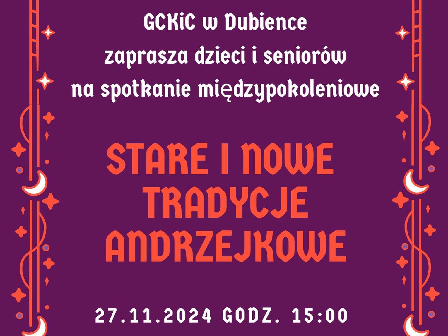 Impreza rozpocznie się od tradycyjnych andrzejkowych wróżb. Będzie to okazja, aby wspólnie powrócić do dawnych zwyczajów i przekonać się, co przyniesie przyszłość. Dla osób, które lubią śpiewać, przygotowano karaoke.