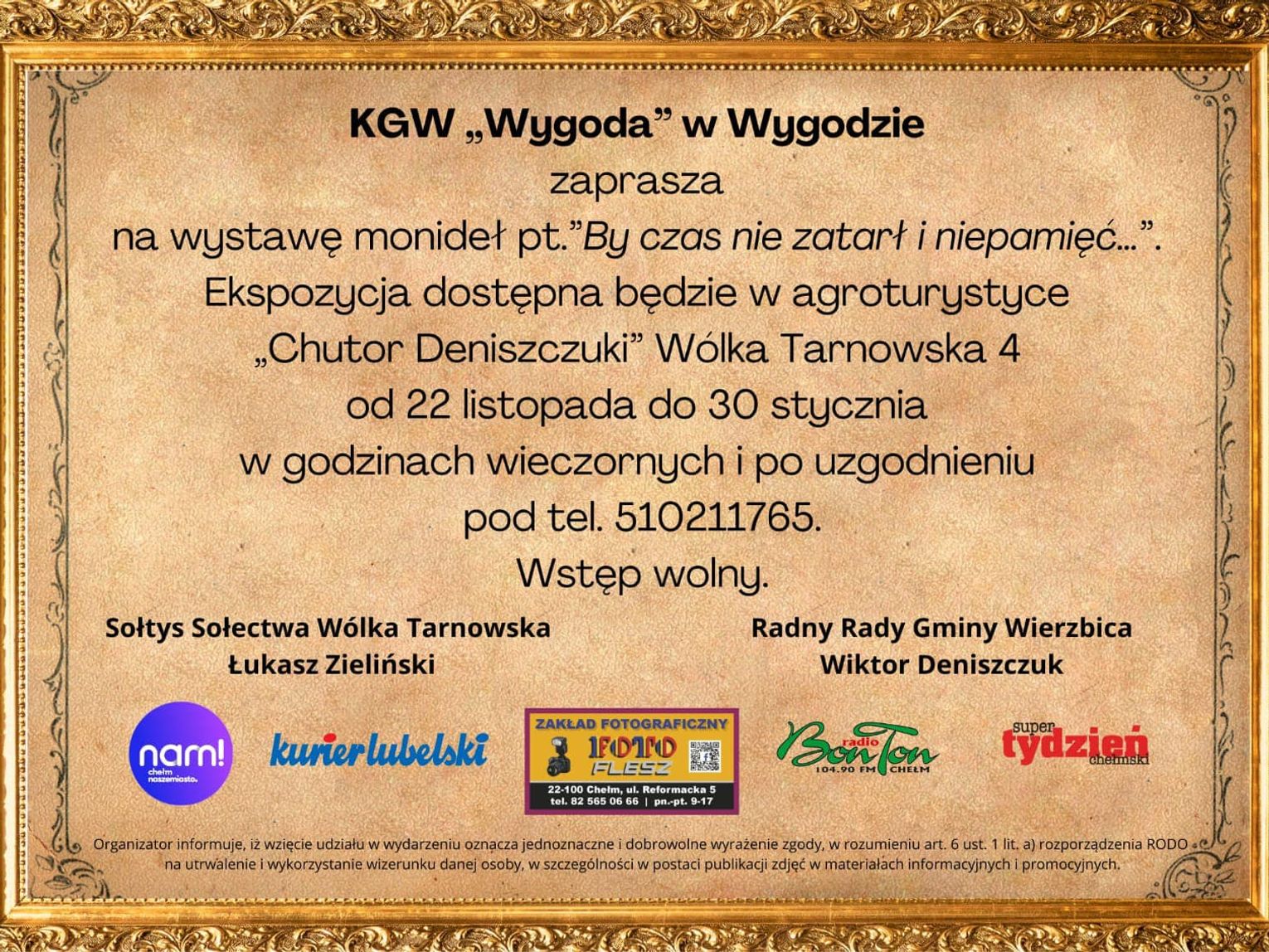 Ekspozycja dostępna będzie w nowo powstałym Wiejskim Salonie Poezji w Wólce Tarnowskiej 4, którą można oglądać od 22 listopada do 30 stycznia w godzinach wieczornych i po uzgodnieniu pod tel. 510211765.