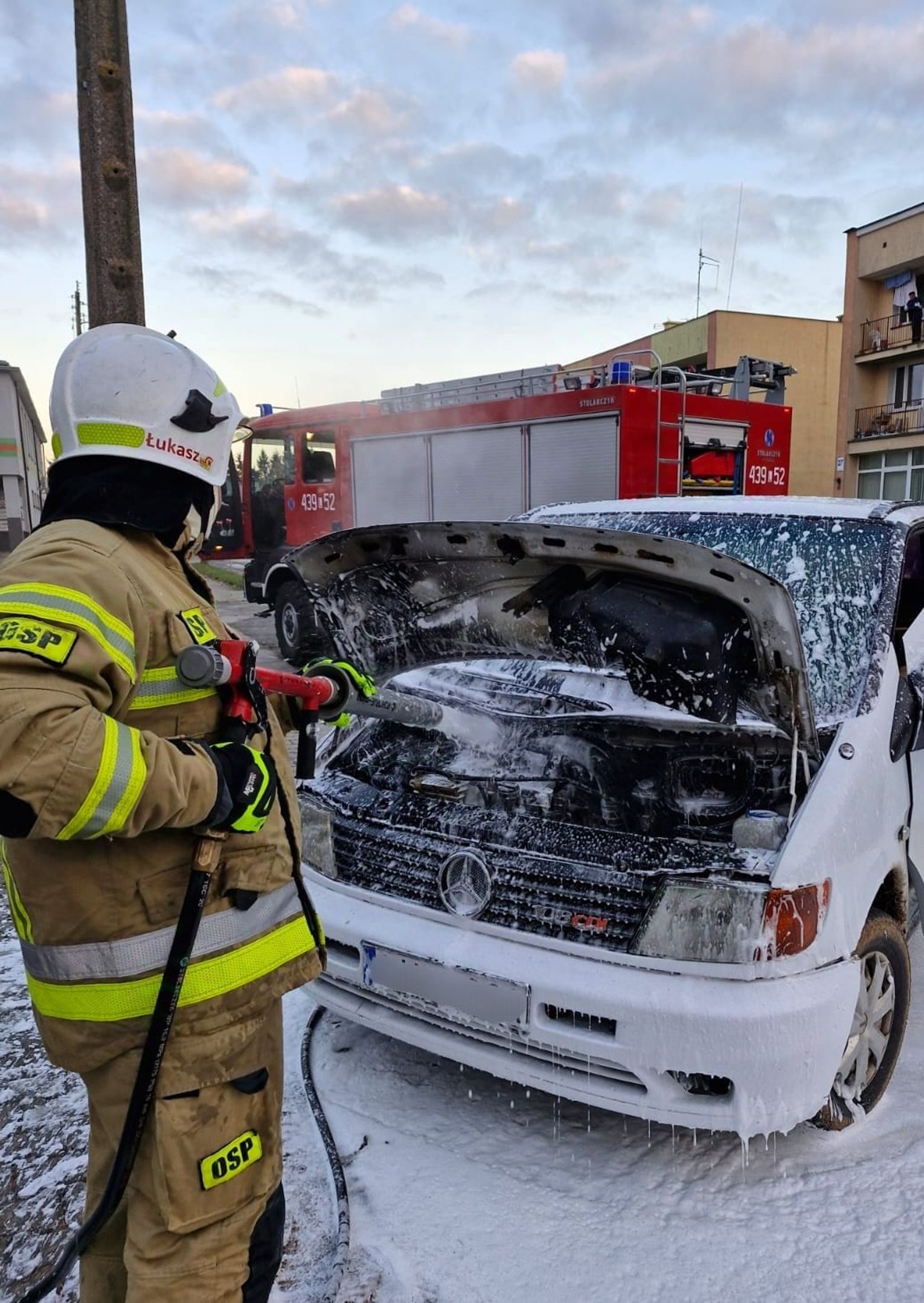 Do zdarzenia doszło około godziny 15:00. Kierowca mercedesa vito, gdy zauważył wydobywający się z auta dym, zjechał na pobocze. Zadzwonił po strażaków, ale jeszcze sam próbował przy pomocy gaśnicy stłumić płomienie. Niestety, bezskutecznie.
