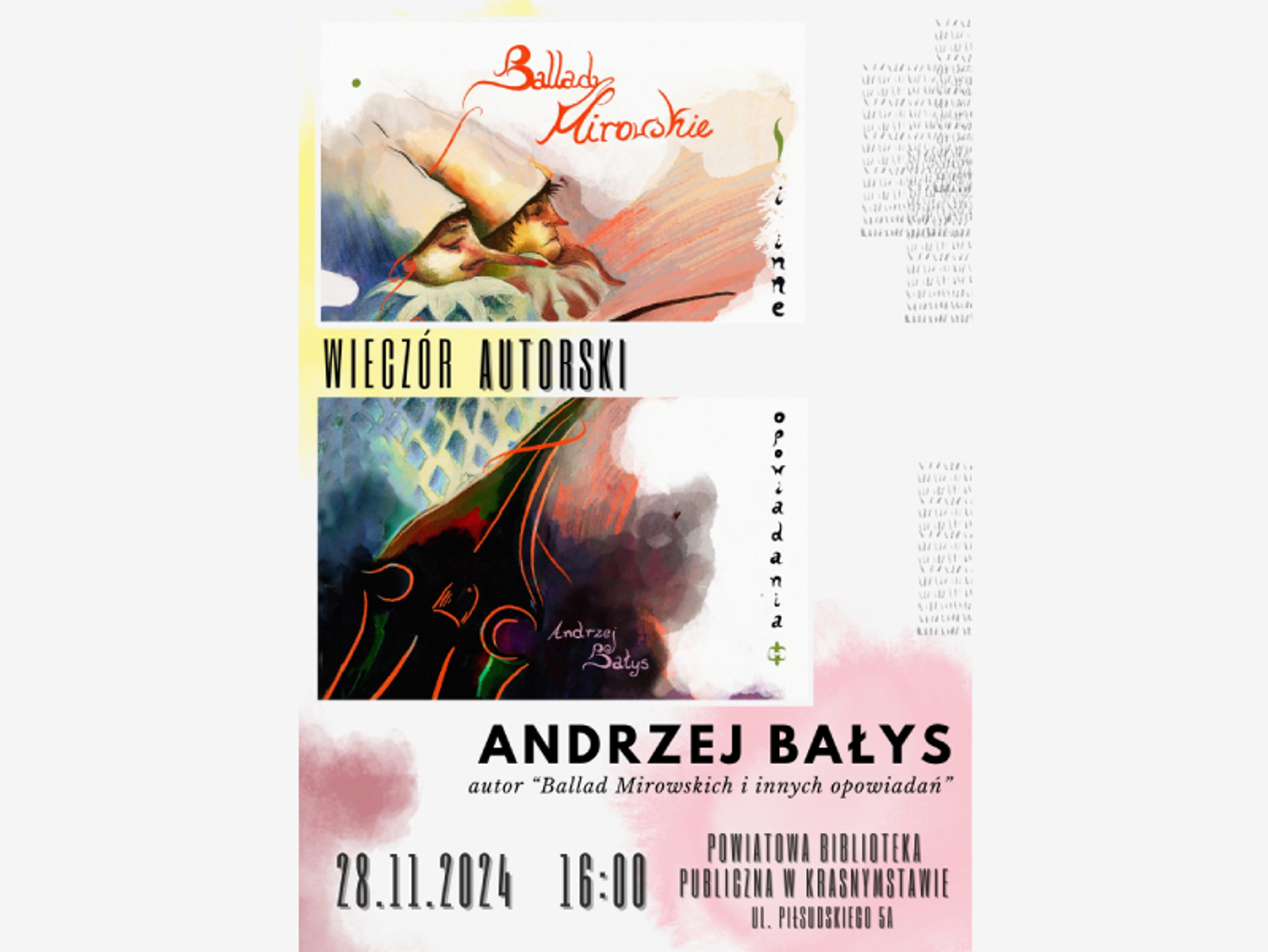 To wydarzenie będzie okazją dla mieszkańców Krasnegostawu i okolic, by spotkać się z pisarzem, który swoją karierę literacką rozpoczynał właśnie w tym mieście. Andrzej Bałys, absolwent filologii polskiej Uniwersytetu Rzeszowskiego, przez lata związany był z regionem. Pracował jako nauczyciel polonista, redaktor w wydawnictwie, kierowca vana, operator wózka widłowego i nocny recepcjonista, zdobywając doświadczenie, które z pewnością znalazło odzwierciedlenie w jego twórczości.