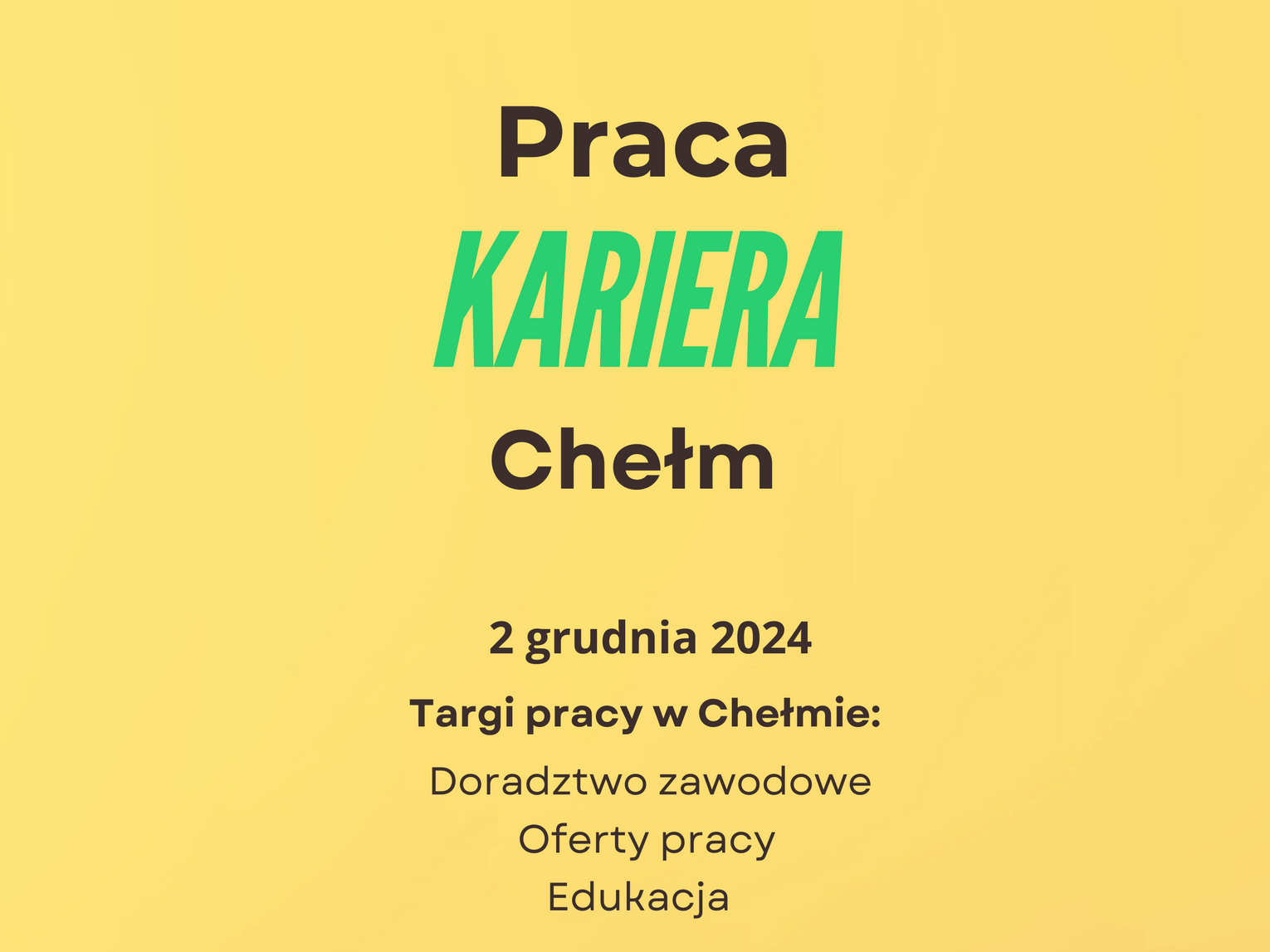 Powiatowy Urząd Pracy w Chełmie zaprasza również 2 grudnia na Targi Pracy, które odbędą się w Chełmskiej Bibliotece Publicznej. Wydarzenie stanowi doskonałą okazję dla pracodawców, by zaprezentować swoje oferty pracy i pozyskać nowych kandydatów. Z kolei osoby poszukujące zatrudnienia będą miały szansę bezpośredniego kontaktu z potencjalnymi pracodawcami.