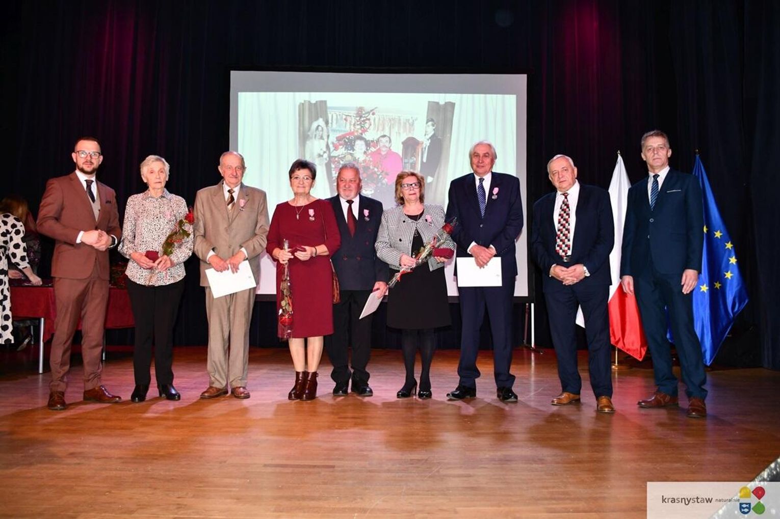 Aktu dekoracji jubilatów dokonał Daniel Miciuła, burmistrz Krasnegostawu, któremu asystowali starosta krasnostawski Janusz Szpak oraz radny Lucjan Wąsiura, który reprezentował przewodniczącego Rady Miasta Krasnystaw Marcina Wilkołazkiego.