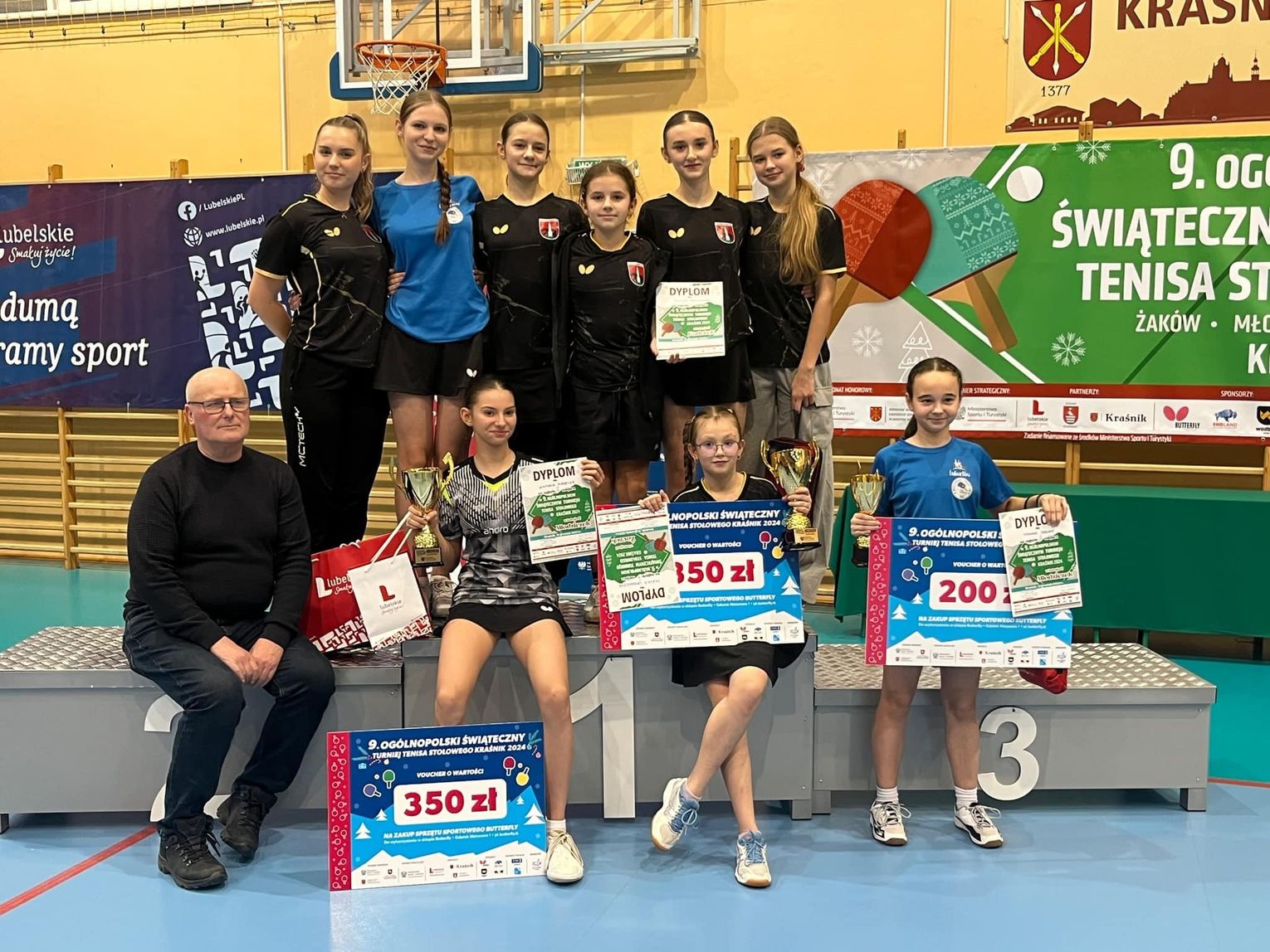 Liczna reprezentacja naszych klubów stawiła się w Kraśniku, bo właśnie tam odbył się 9. Ogólnopolski Świąteczny Turniej Tenisa Stołowego w kilku kategoriach wiekowych. Wiktoria Piasecka, zawodniczka chełmskiego Ogniwa, zajęła tam drugie miejsce w gronie młodziczek, natomiast jej klubowy kolega Szymon Mróz uplasował się na szóstej lokacie w grupie kadetów.