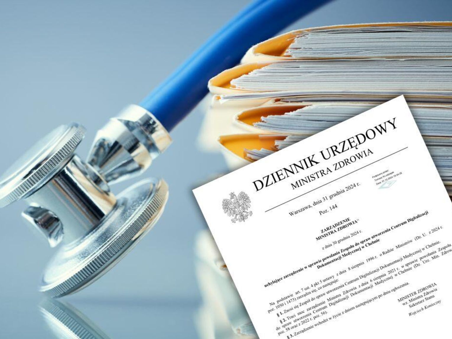 Na mocy zarządzenia podpisanego przez sekretarza stanu Wojciecha Koniecznego, zniesiono Zespół ds. utworzenia Centrum Digitalizacji Dokumentacji Medycznej w Chełmie, a zarządzenie Ministra Zdrowia z sierpnia 2021 roku, które powoływało ten zespół, straciło moc. Dokument wskazuje, że decyzja wchodzi w życie dzień po jego ogłoszeniu.