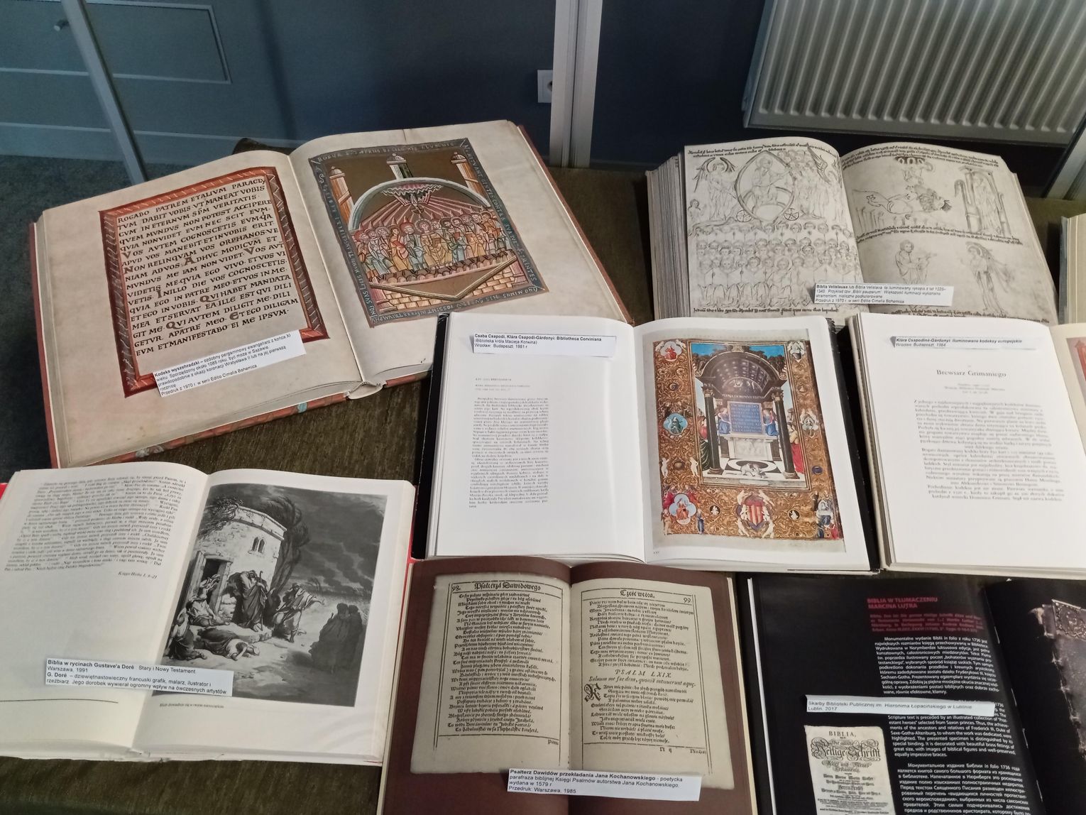 Na wystawie będzie można zobaczyć m.in. przedruk kodeksu wyszechradzkiego (pergaminowego ewangeliarza, powstałego około 1085 r.), przedruk Biblii Velislava (rękopis z lat 1325-1349, tzw. Biblia pauperum); album prezentujący skarby biblioteki węgierskiego króla Macieja Korwina – uważaną w swoim czasie za jeden z najbardziej znanych i najwspanialszych księgozbiorów renesansowych, czy przedruk Psałterza Dawidowy, autorstwa Jana Kochanowskiego (wydany po raz pierwszy w 1579 r.).