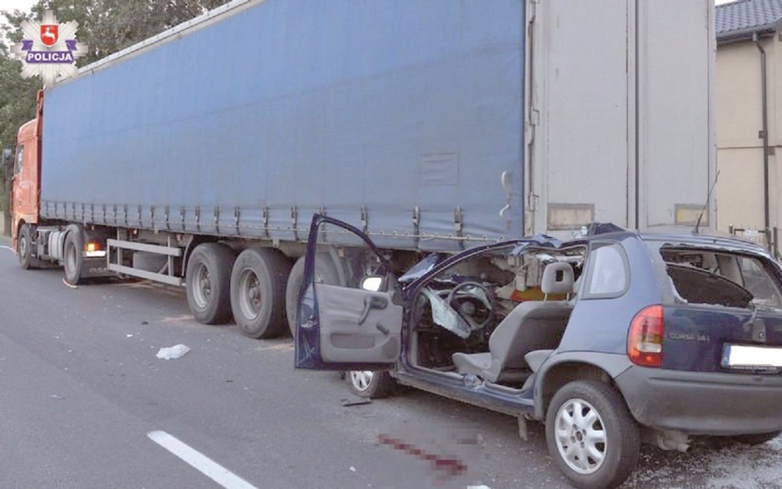 Ze wstępnych ustaleń policjantów wynika, że kierujący oplem 40-latek uderzył w tył naczepy samochodu ciężarowego, który stał na poboczu drogi. 30-letniego kierowcy tira, obywatela Ukrainy, nie było w tym czasie w kabinie. Policjantom tłumaczył, że zatrzymał się na chwilę przy sklepie, aby obejrzeć znajdujące się w nim rowery. Wtedy w jego pojazd uderzyła osobówka.