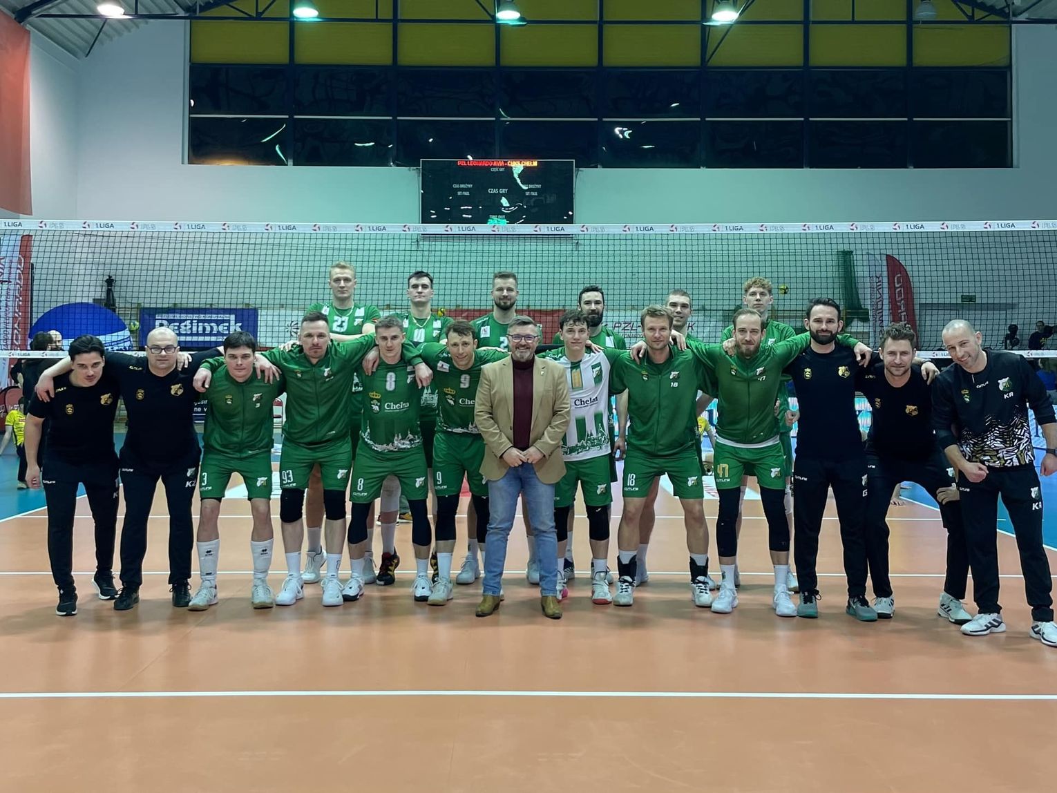 Avia Świdnik nie postawiła liderowi łatwych warunków, ale zarazem sporo punktów zgarnęła z błędów ChKS-u. Po wyrównanym początku pierwszego seta w pole serwisowe biało-zielonych wszedł Łukasz Swodczyk, który zagrywał piłki skutecznie wykorzystywane przez jego kolegów z drużyny, sam po drodze dołożył jeszcze asa. Chełmianie odskoczyli na 12:8 i wtedy ich passę przerwał atak Marcina Ociepskiego. Avia była jednak zmuszona ścigać wynik, ponieważ zespół prowadzony przez Krzysztofa Andrzejewskiego utrzymywał lekką przewagę, w czym swój wkład mieli m.in. Jędrzej Goss, Tomasz Piotrowski, Mariusz Marcyniak i wyjątkowo skuteczny tego wieczoru Paweł Rusin. Ten ostatni w końcówce partii dołożył dwa asy, a 25. pkt przy 19. oczkach gospodarzy zdobył Mariusz Marcyniak wykorzystując powrotną piłkę.