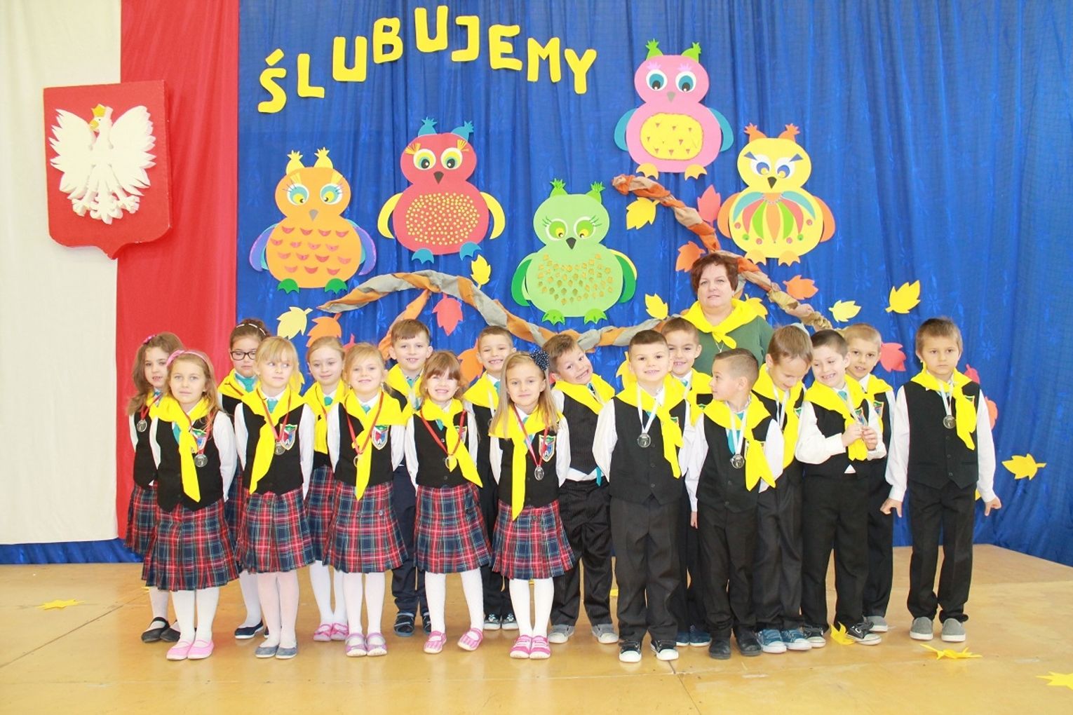 Wśród zaproszonych gości była dyrektor Bogumiła Ryszkiewicz, nauczyciele i uczniowie placówki oraz rodzice. Uroczystość przygotowała wychowawczyni klasy I Grażyna Prościńska.
