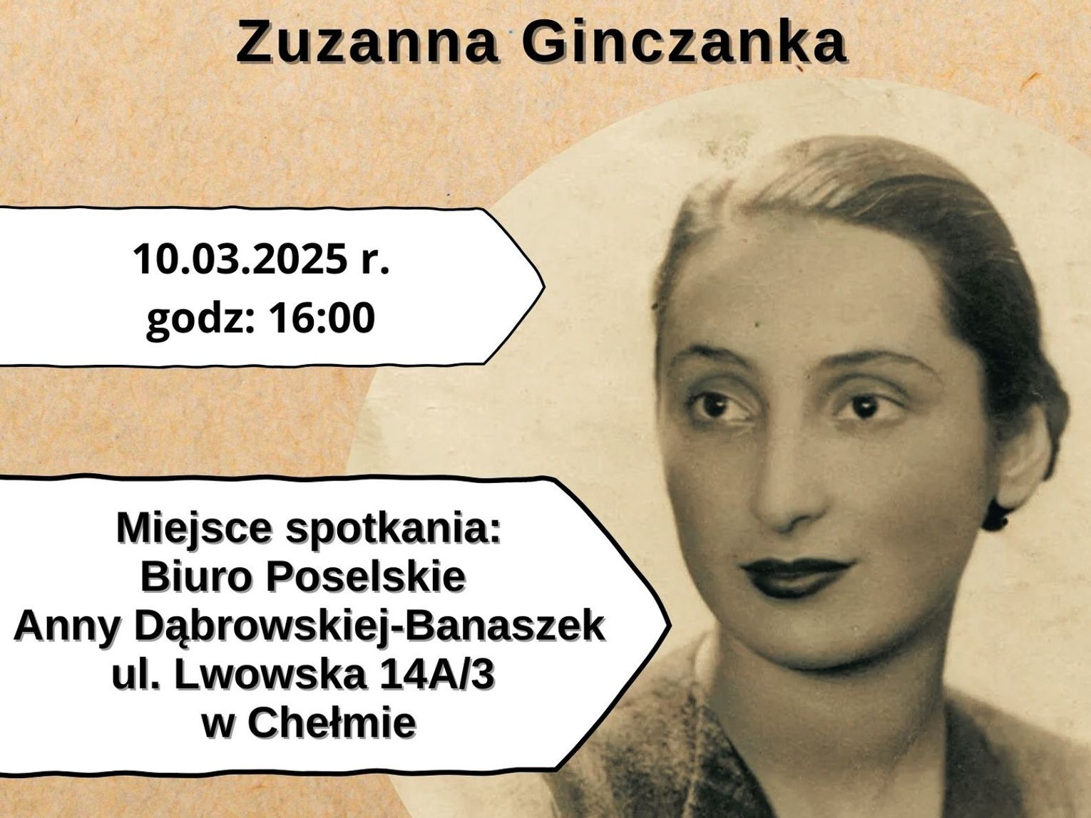Zuzanna Ginczanka była polską poetką żydowskiego pochodzenia, która żyła w latach 1917–1944. Uważana jest za jedną z najwybitniejszych poetek okresu dwudziestolecia międzywojennego. Jej poezja, pełna subtelności i głębokich przemyśleń, poruszała tematy uniwersalne, takie jak: miłość, samotność, ale także trudne doświadczenia związane z wojenną rzeczywistością. Jej wiersze, choć pisane w trudnych czasach, wciąż inspirują kolejne pokolenia czytelników. Spotkanie w Chełmie będzie nie tylko okazją do przypomnienia twórczości Ginczanki, ale także do refleksji nad jej życiem i postawą.